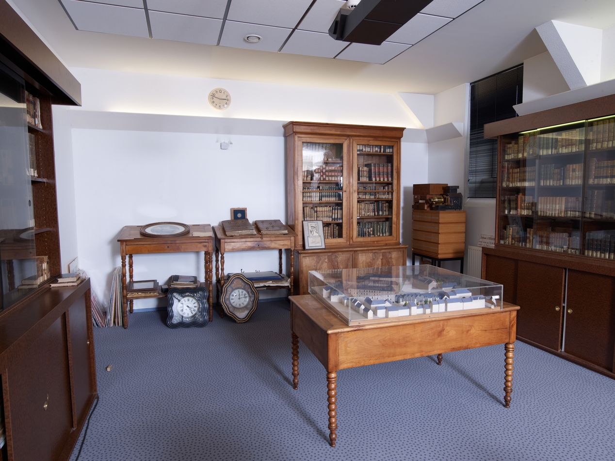 Vue d'ensemble de la salle du "trésor" (bibliothèque ancienne) du lycée.Immatriculation