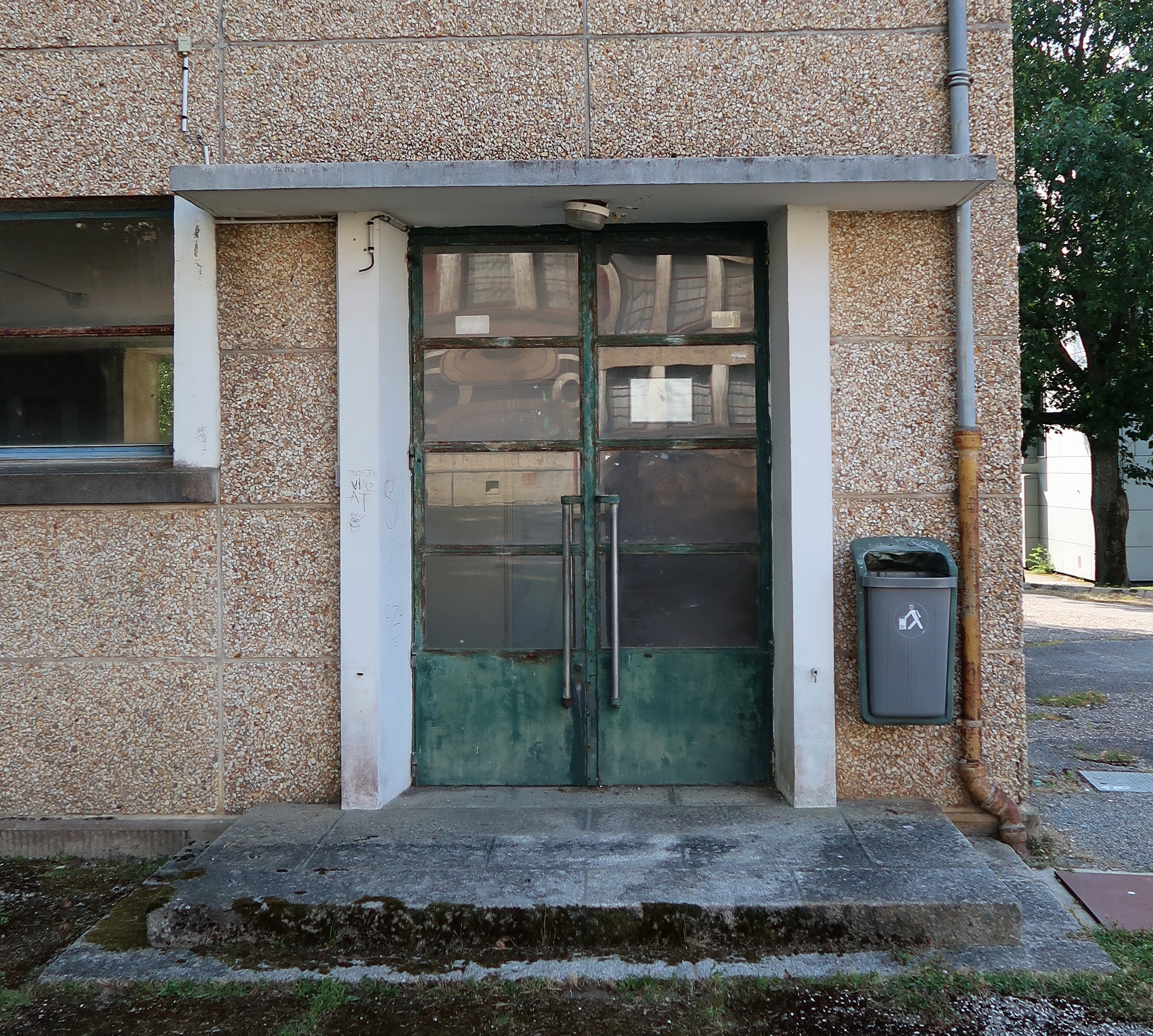 Externat désaffecté (G. Tourry Architecte), détail d'une entrée sur façade nord.Immatriculation