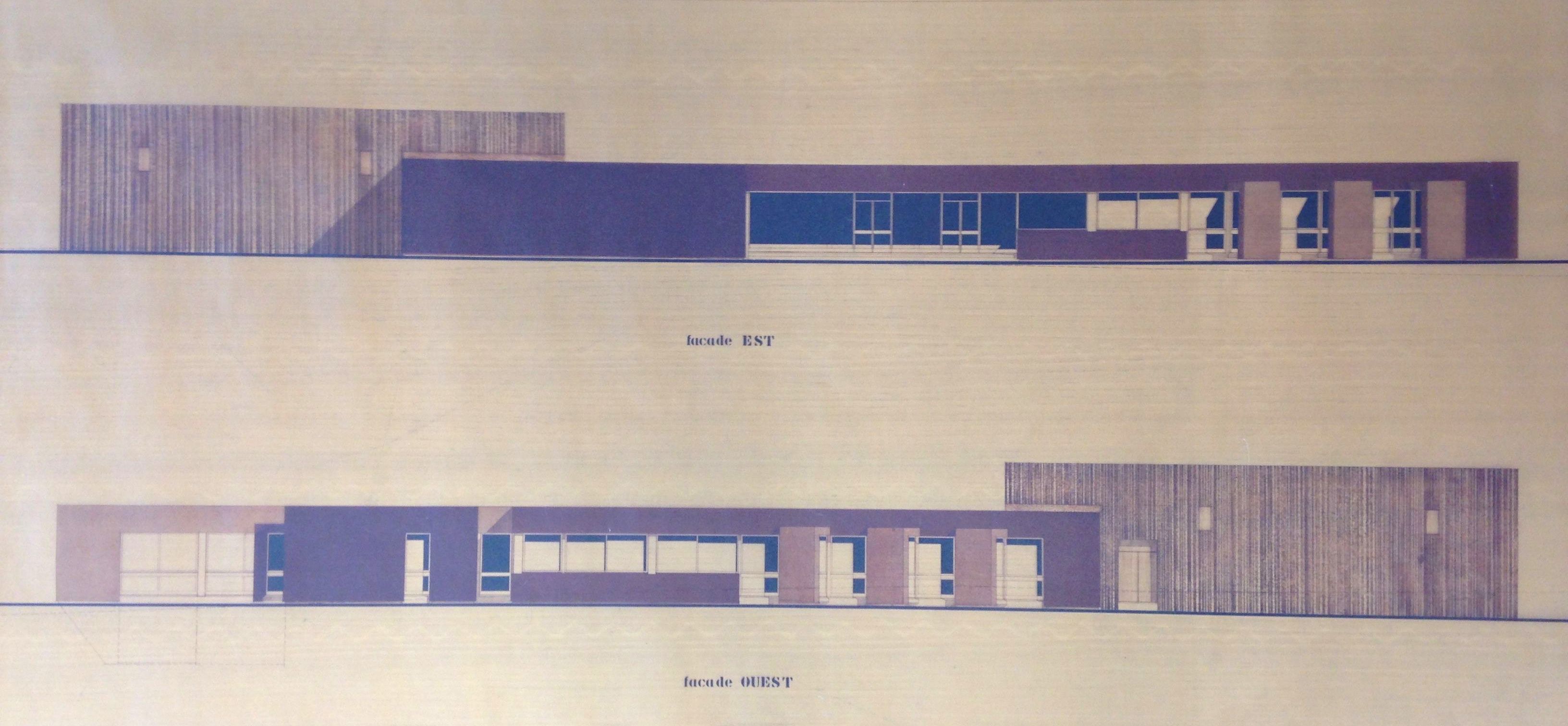 AD Morbihan : 110 J 123. Enseignement : façades est et ouest. Y. Guillou, 1973.