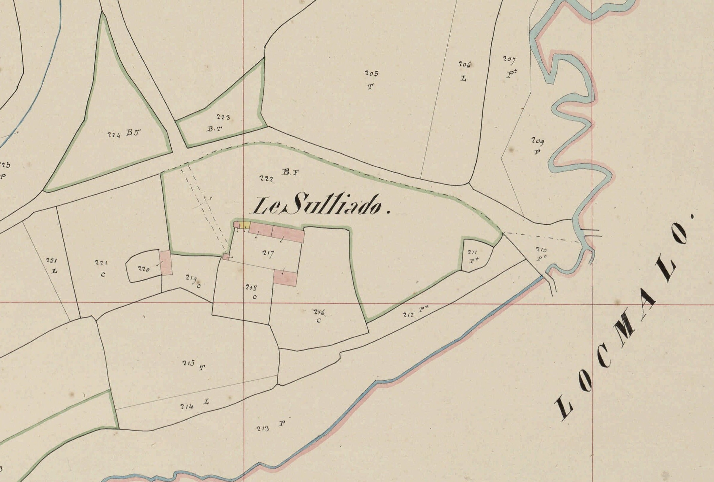 Section B du Bourg, 1re feuille, échelle 1/2 000, parcelles n° 1-302 [1842]Immatriculation