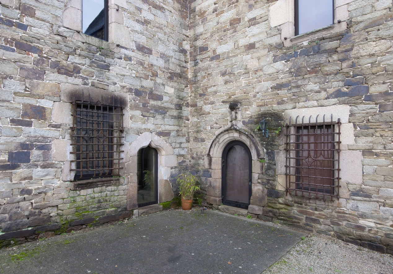 Minihy-Tréguier : manoir de Saint-Renaud, vue des façades est et sud, détail des portes et fenêtresImmatriculation