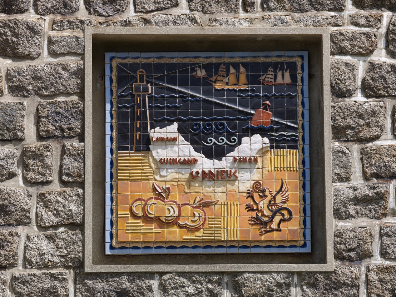 Mosaïque de Pierre Péron, insérée dans le mur à gauche de la rotonde : les Côtes-du-Nord. Elle a été présentée dans le pavillon de la Bretagne lors de l'exposition internationales de 1937.Immatriculation
