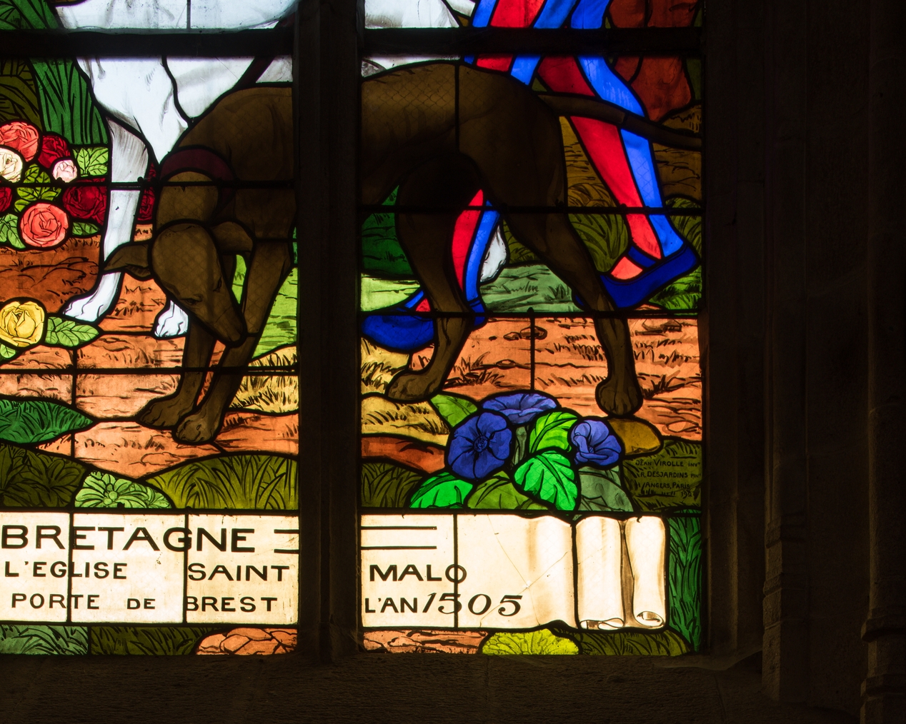 Vitrail : Charles de Blois reçu par le prieur des cordeliers de Dinan, détailImmatriculation