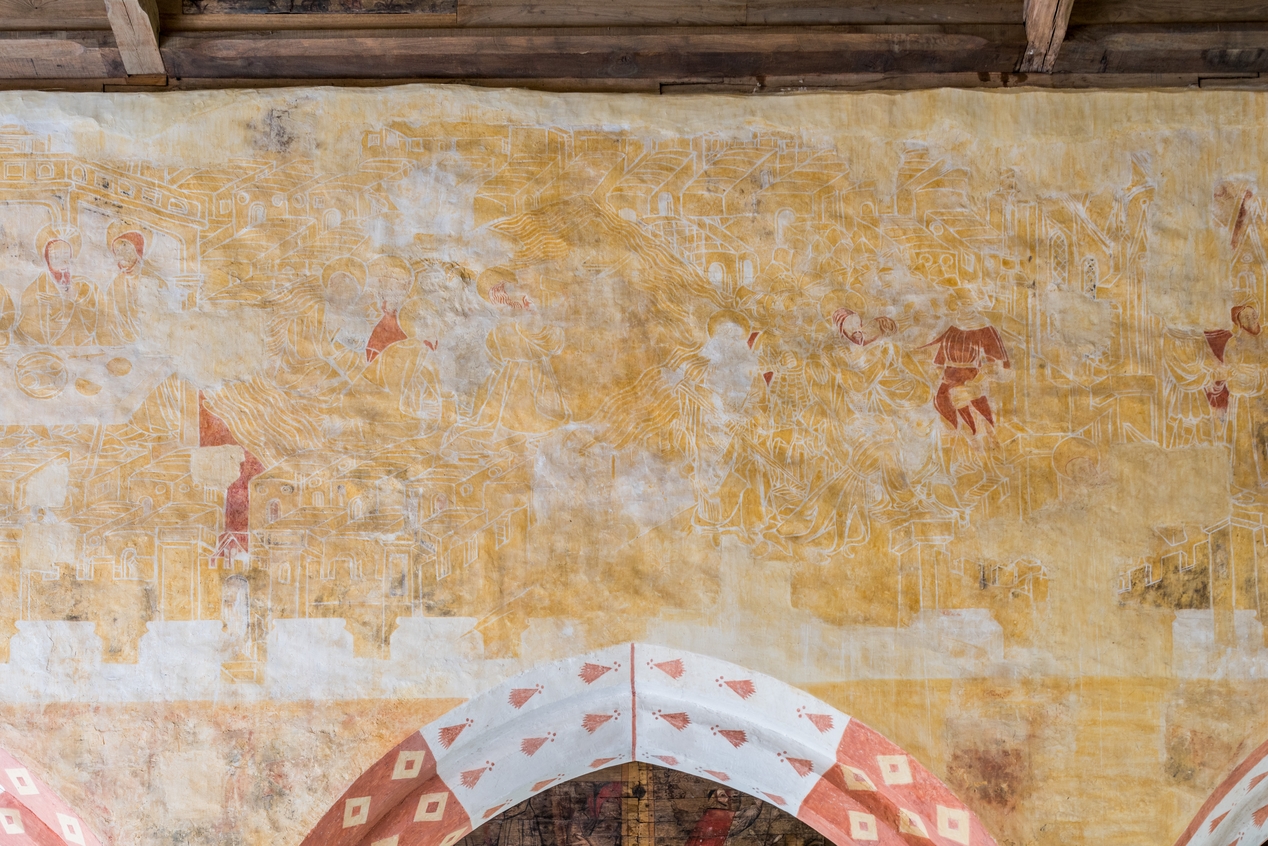 Peintures murales du XVè siècle. L'Agonie du Christ au Jardin des Oliviers, l'Arrestation et le Baiser de Judas.Immatriculation