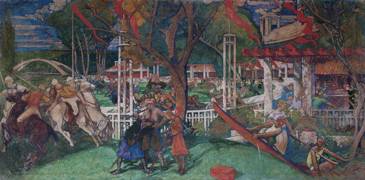 "Les sports, éloge de la vie moderne", toile d'Henri Marret, marouflée sur le mur sud du réfectoire.Immatriculation
