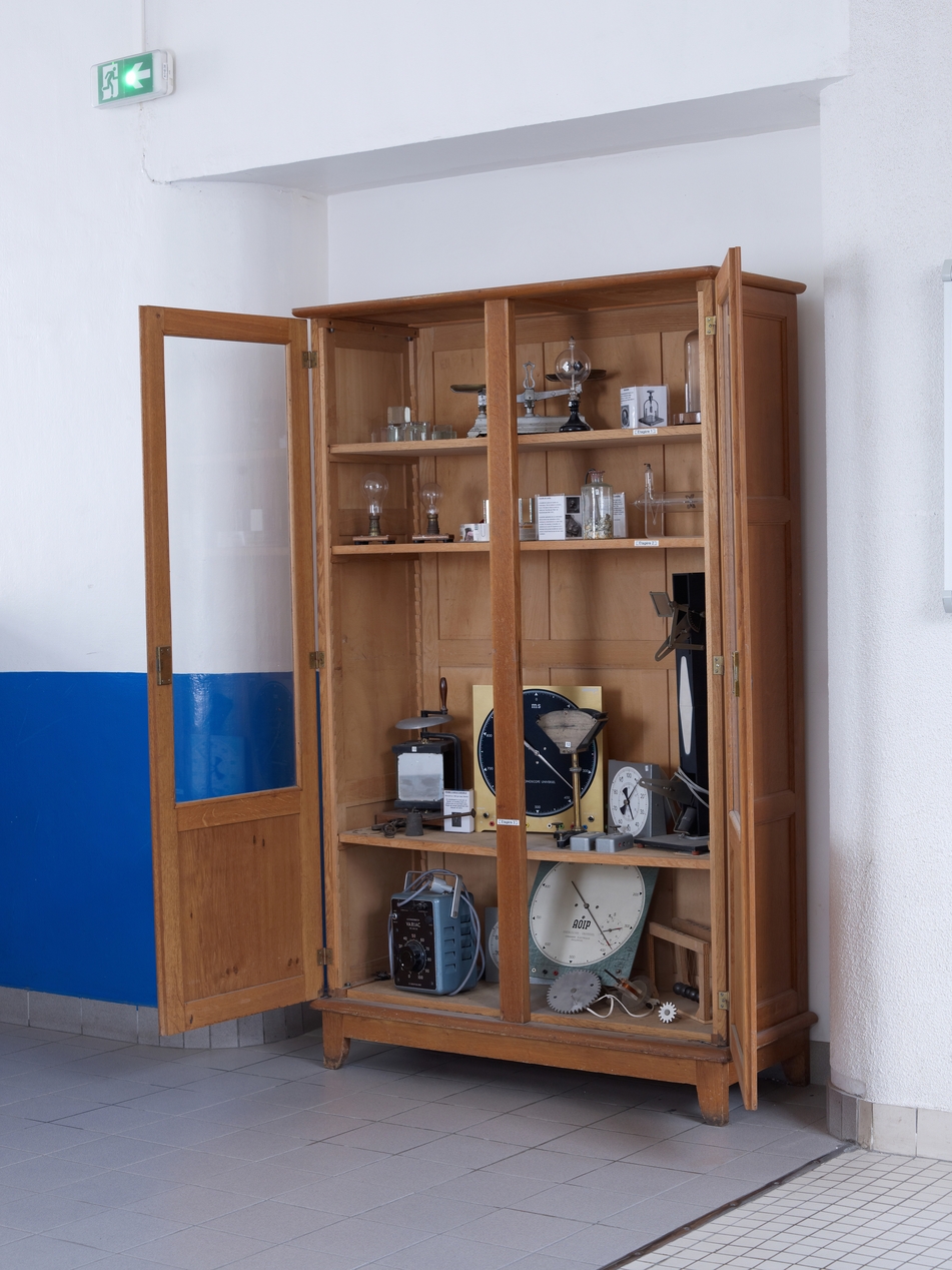 Vue d'ensemble d'une des vitrines de la collection de physiqueImmatriculation