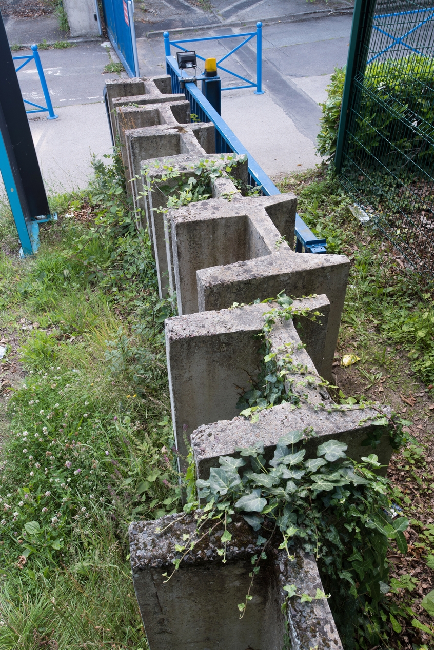 L'entrée du lycée : vue de détail sur le muret prise en plongée.Immatriculation
