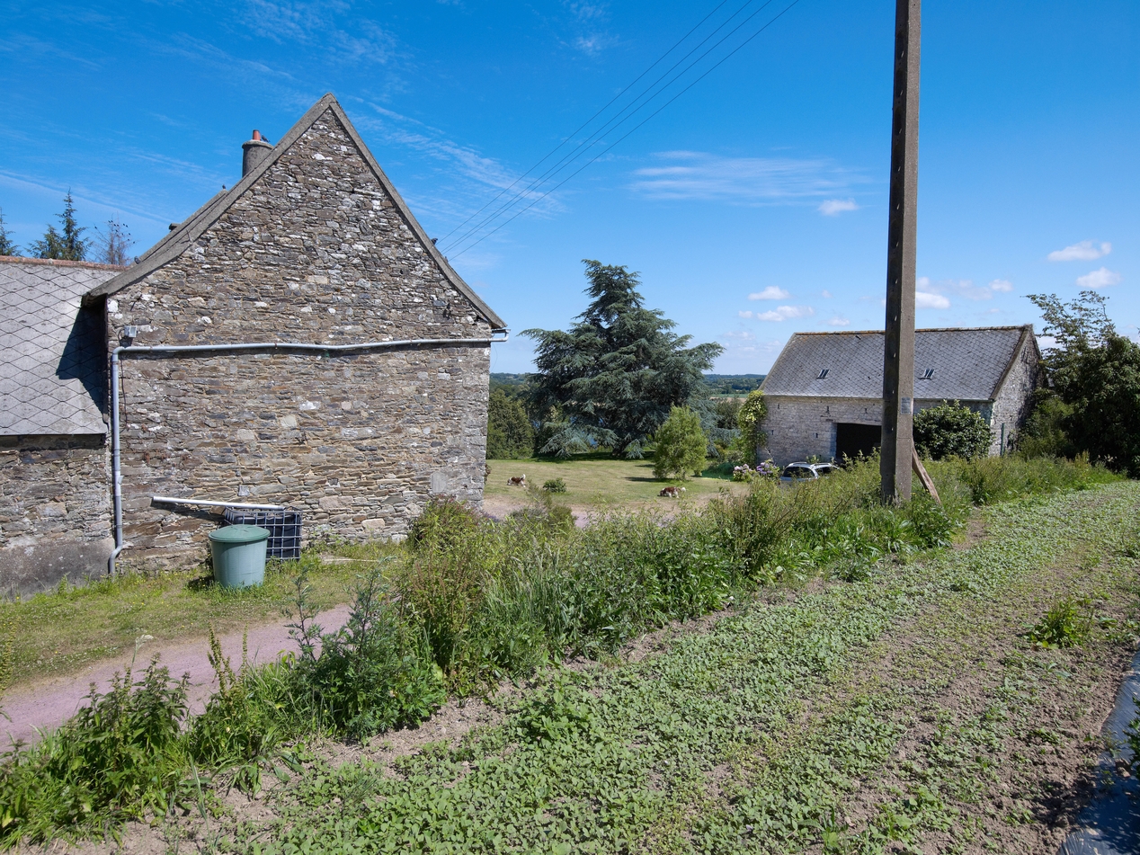 Minihy-Tréguier : manoir de Traou Martin, pignon ouest, vue générale. A l'arrière-plan : grange - remiseImmatriculation