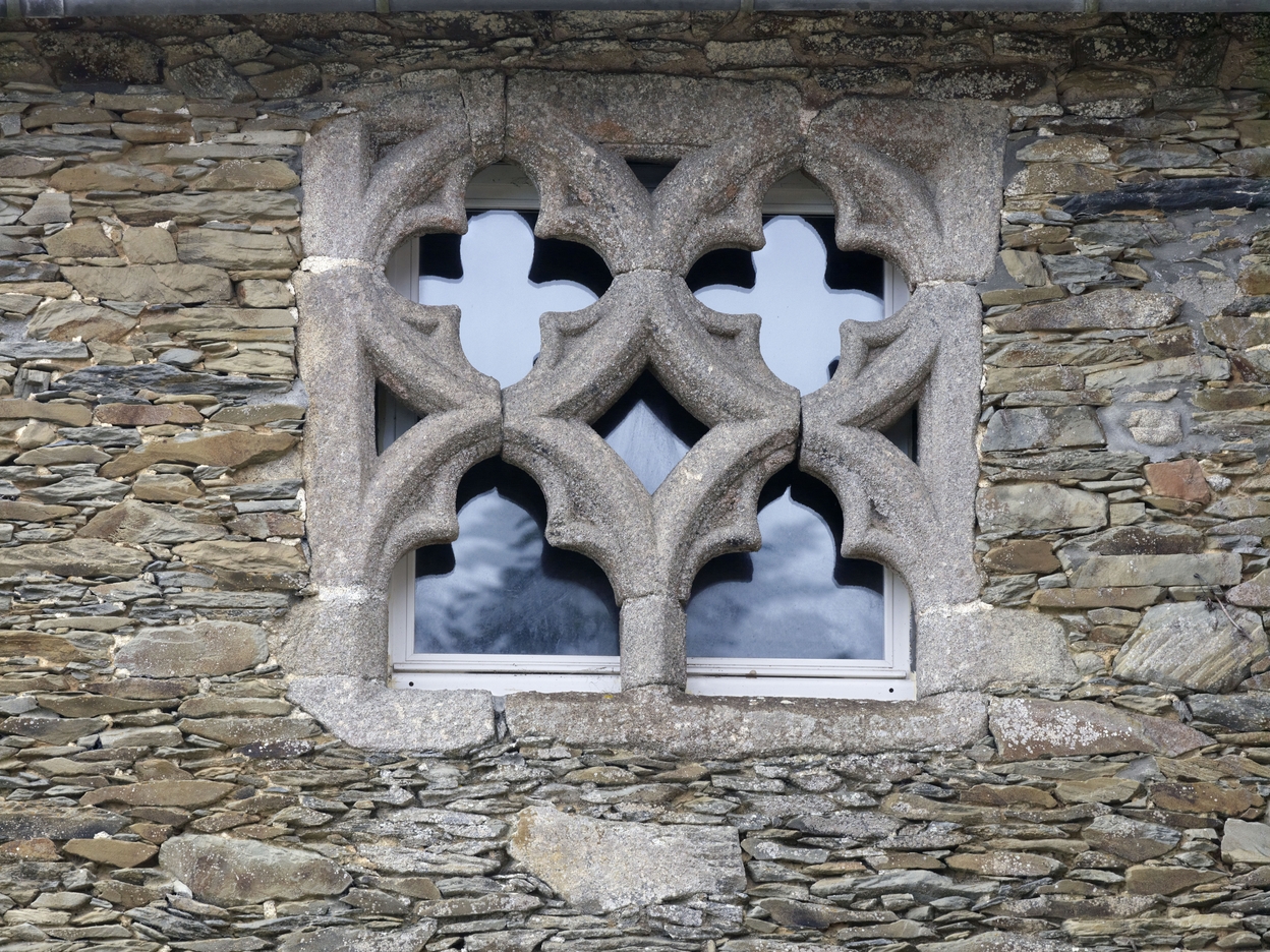 Elévation nord, détail de la partie supérieure d'une grande baie gothique en remploi (quadrilobes et trilobes)Immatriculation