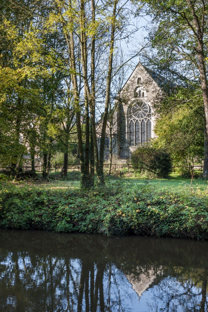 Le chevet de l'église abbatiale depuis la Rance à l'estImmatriculation
