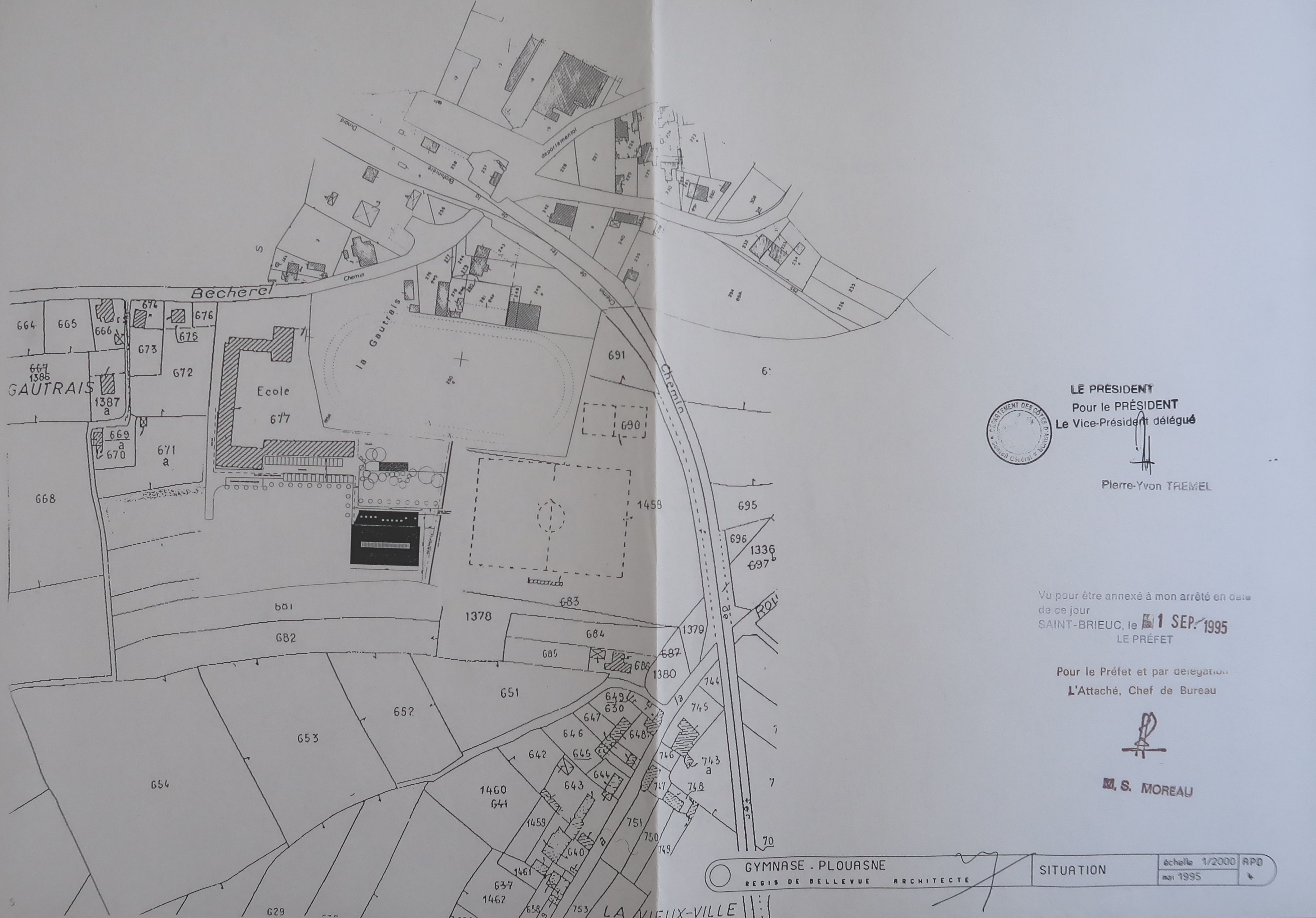 AC Plouasne : PC n° 2220895C1009. Plan de situation. R. de Bellevue, 1995.