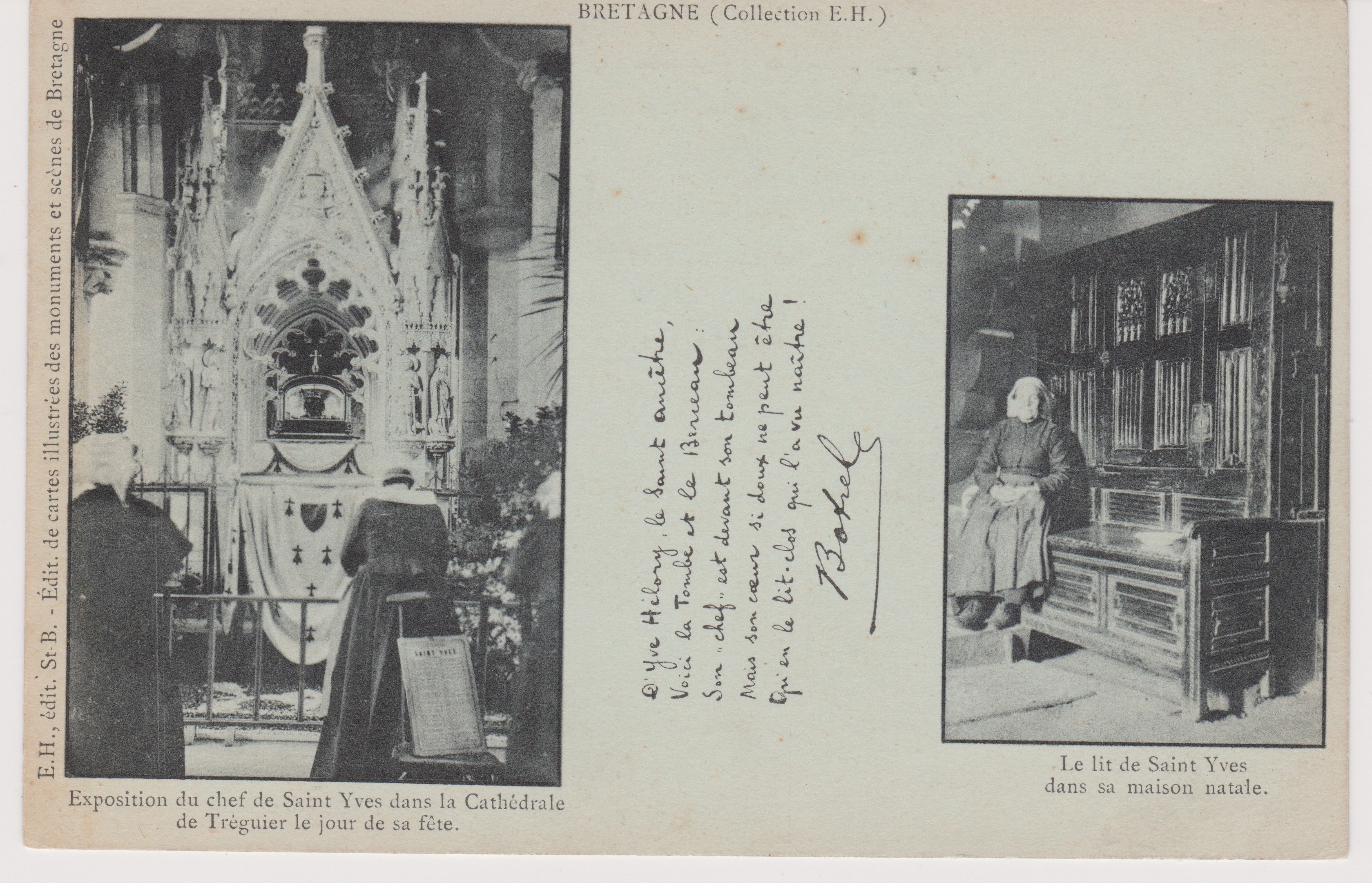 Tombeau de saint Yves dans la cathédrale Saint-Tugdual de Tréguier et intérieur de la ferme de Kermartin à Minihy-Tréguier, carte postale (collection particulière)Immatriculation
