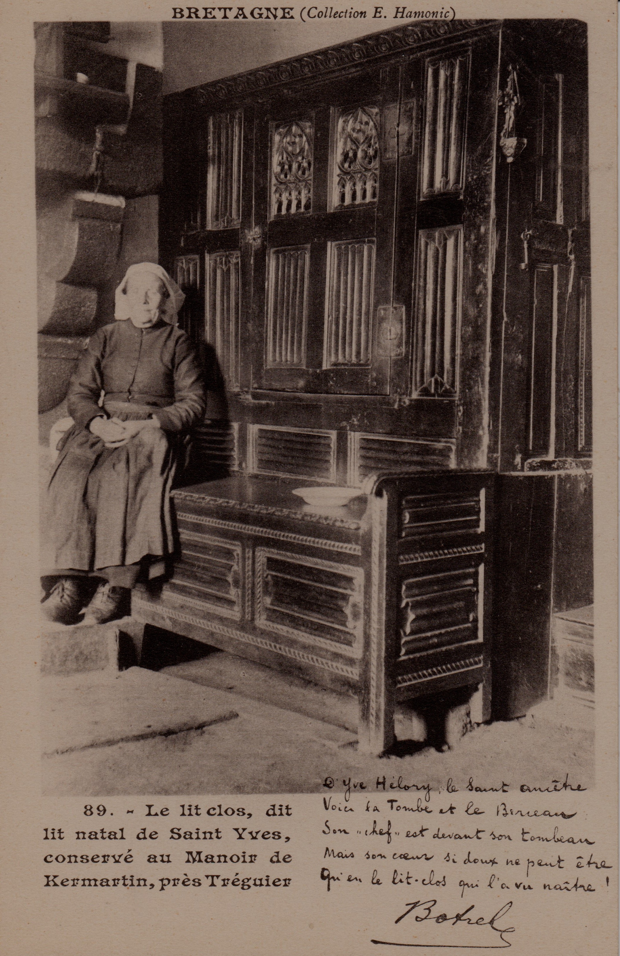 Ferme de Kermartin à Minihy-Tréguier, le lit-clos dit de saint Yves situé près de la cheminée, carte postale (collection particulière)Immatriculation
