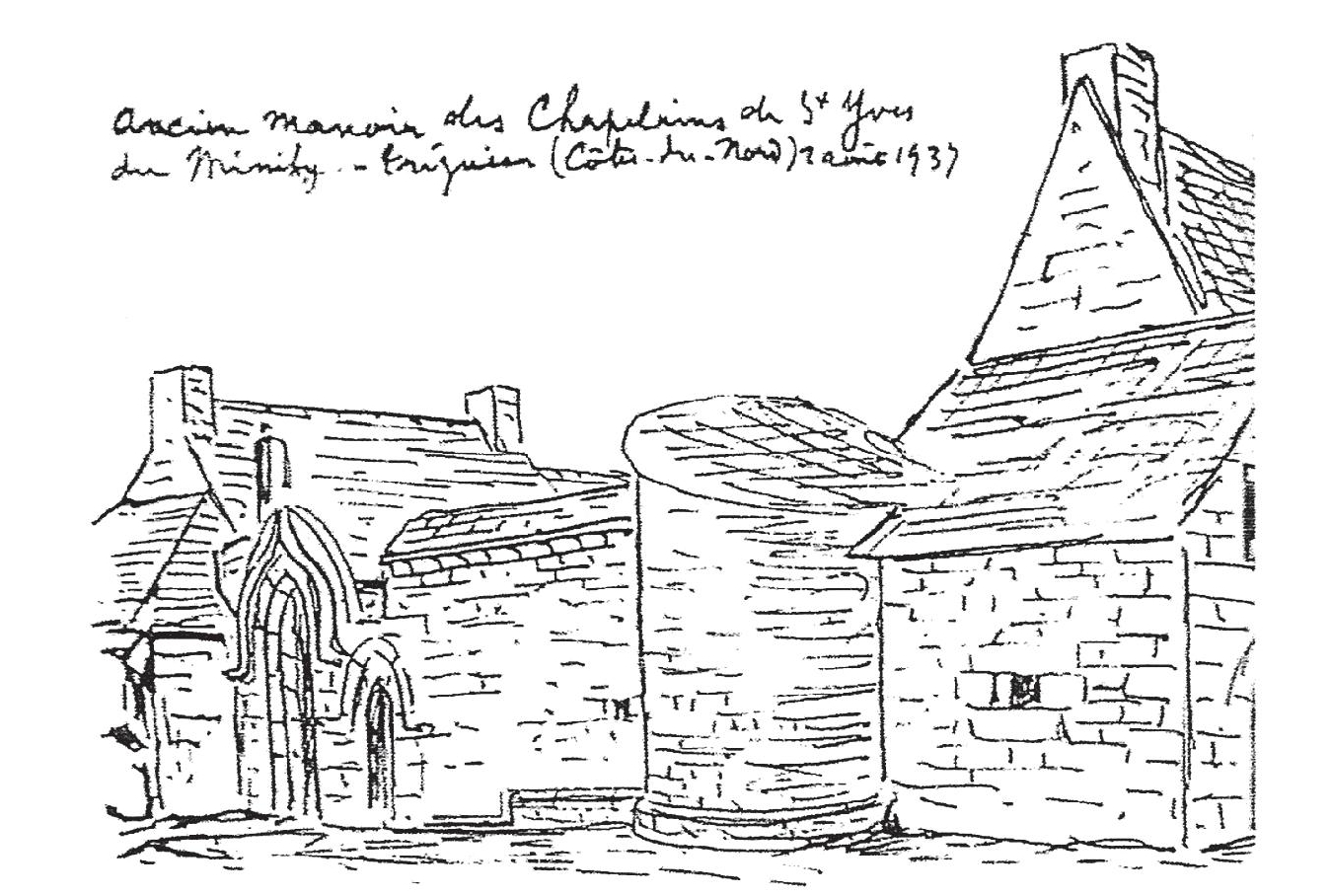 Ancien manoir des chapelains de Saint-Yves de Minihy-Tréguier (Côtes-du-Nord)", 2 août 1937, depuis le nord-est, dessin du vicomte Frottier de La MesselièreImmatriculation