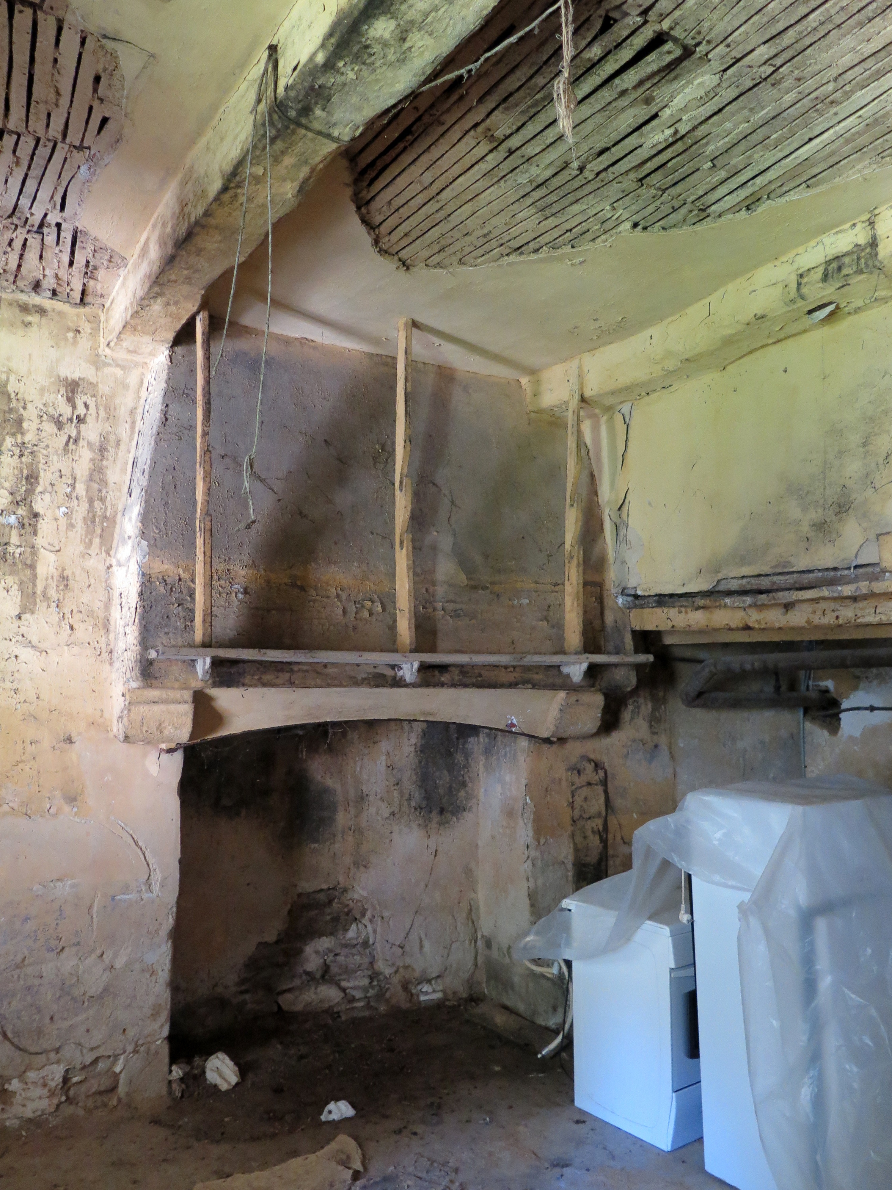 Tréguier, 9 rue des Perdreries (Perderies) : maison dite "Scolasticat", logis principal (extrémité nord), vue intérieure, détail d'une cheminéeImmatriculation