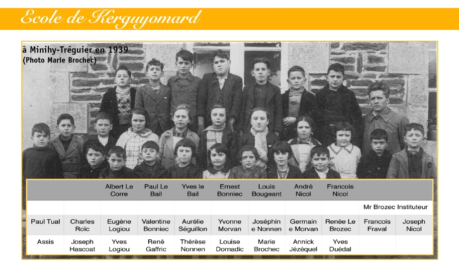 Photographie de classe de 1939 : cours préparatoire et cours moyen (source : Marie Brochec, Bulletin municipal de Minihy-Tréguier, n° 47, novembre 2014)Immatriculation