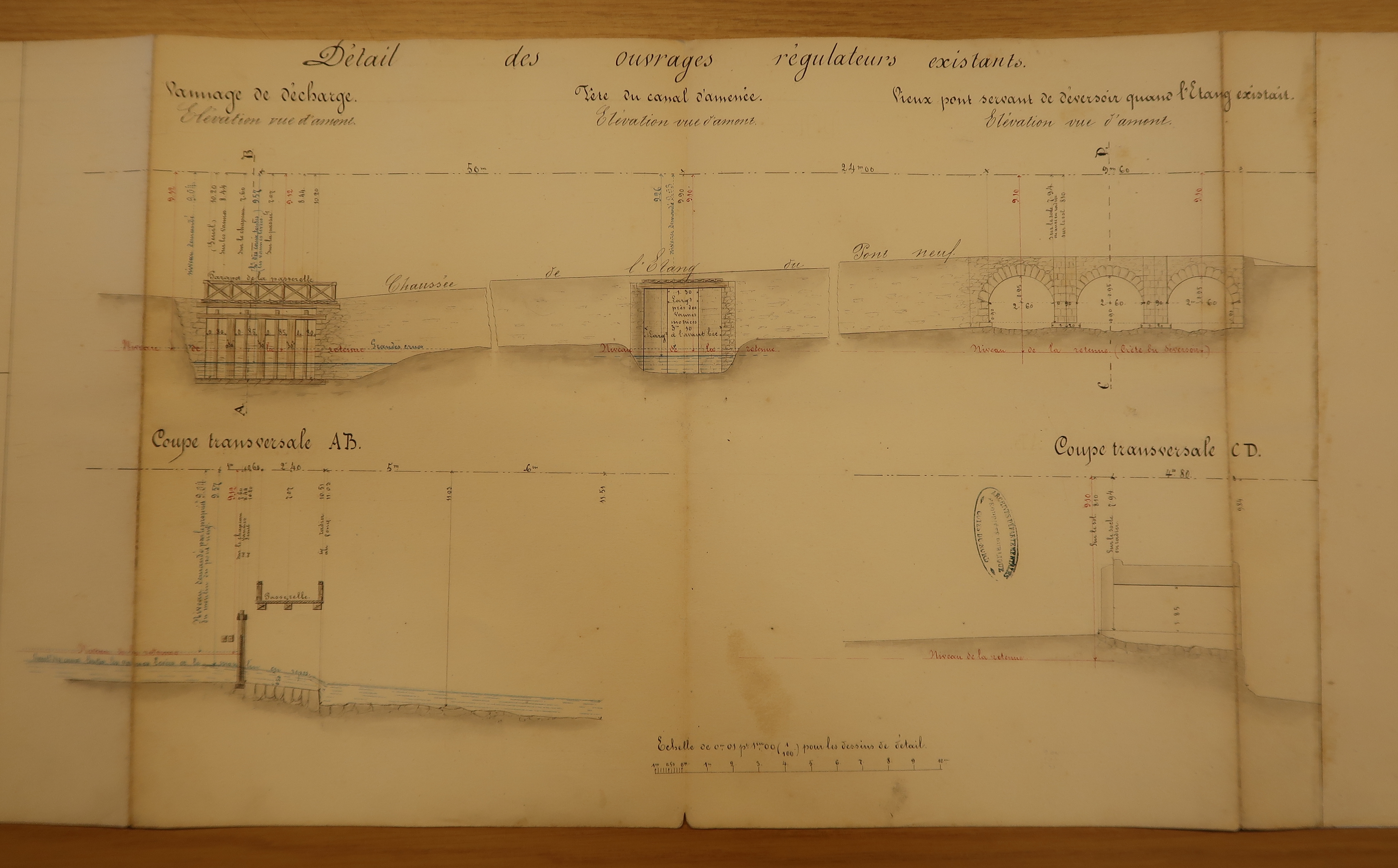 Réglementation d'office du Moulin du Pont Neuf à Minihy-Tréguier : dessins (Archives départementales des Côtes-d’Armor : 8 S 6 Guindy et affluents)