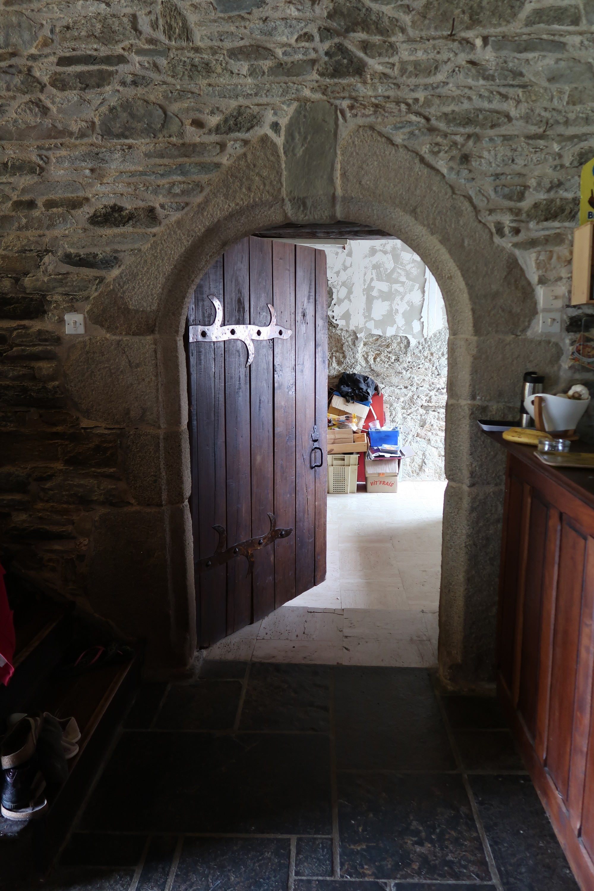 Minihy-Tréguier : manoir du Merdy, mur de refend, détail d'une porte chanfreinée à linteau en anse de panierImmatriculation