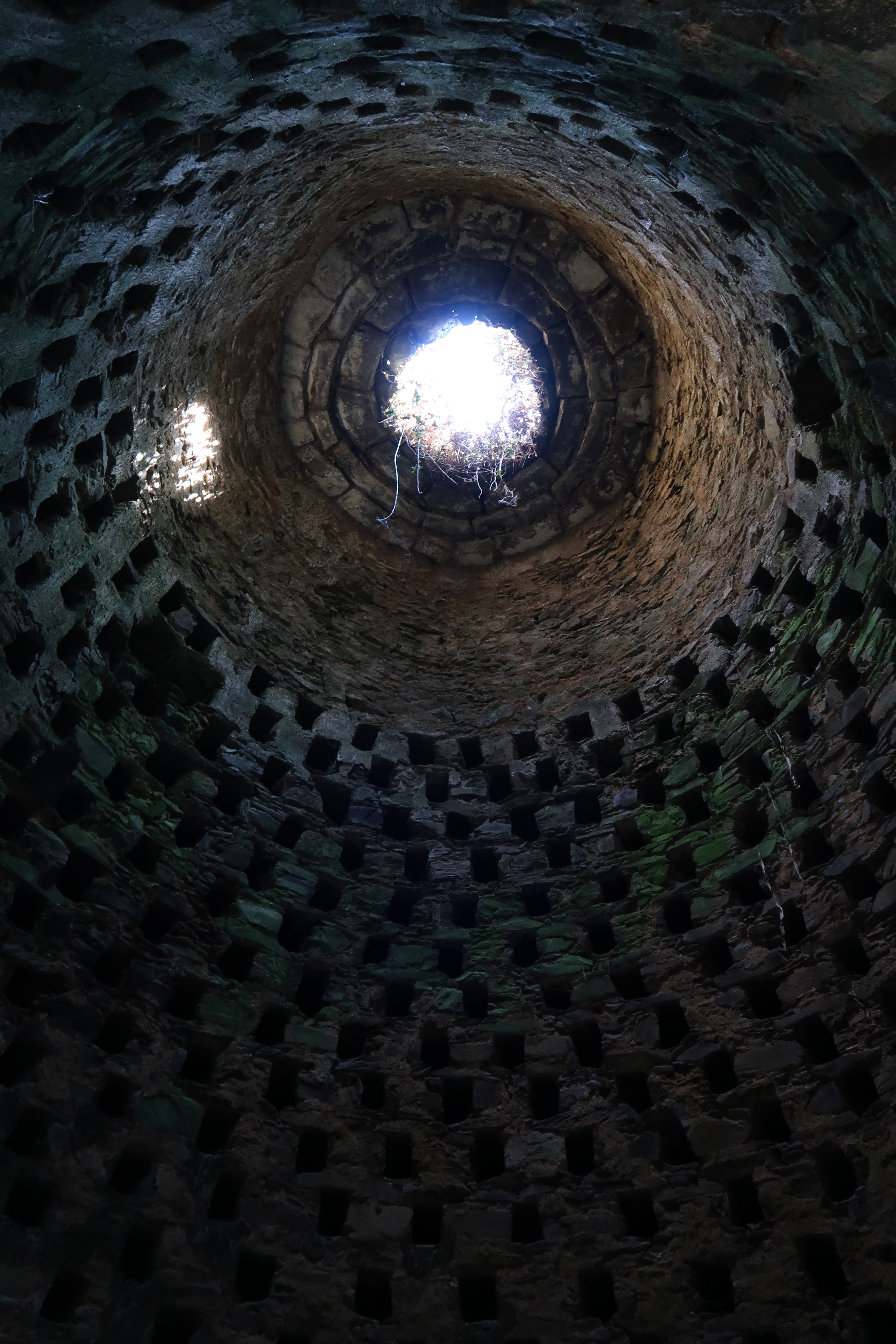 Minihy-Tréguier : colombier de Kermartin, vue de l'intérieur, détail des niches disposés par rangées superposées et disposés en quinconce (par arrangement de cinq unités)Immatriculation