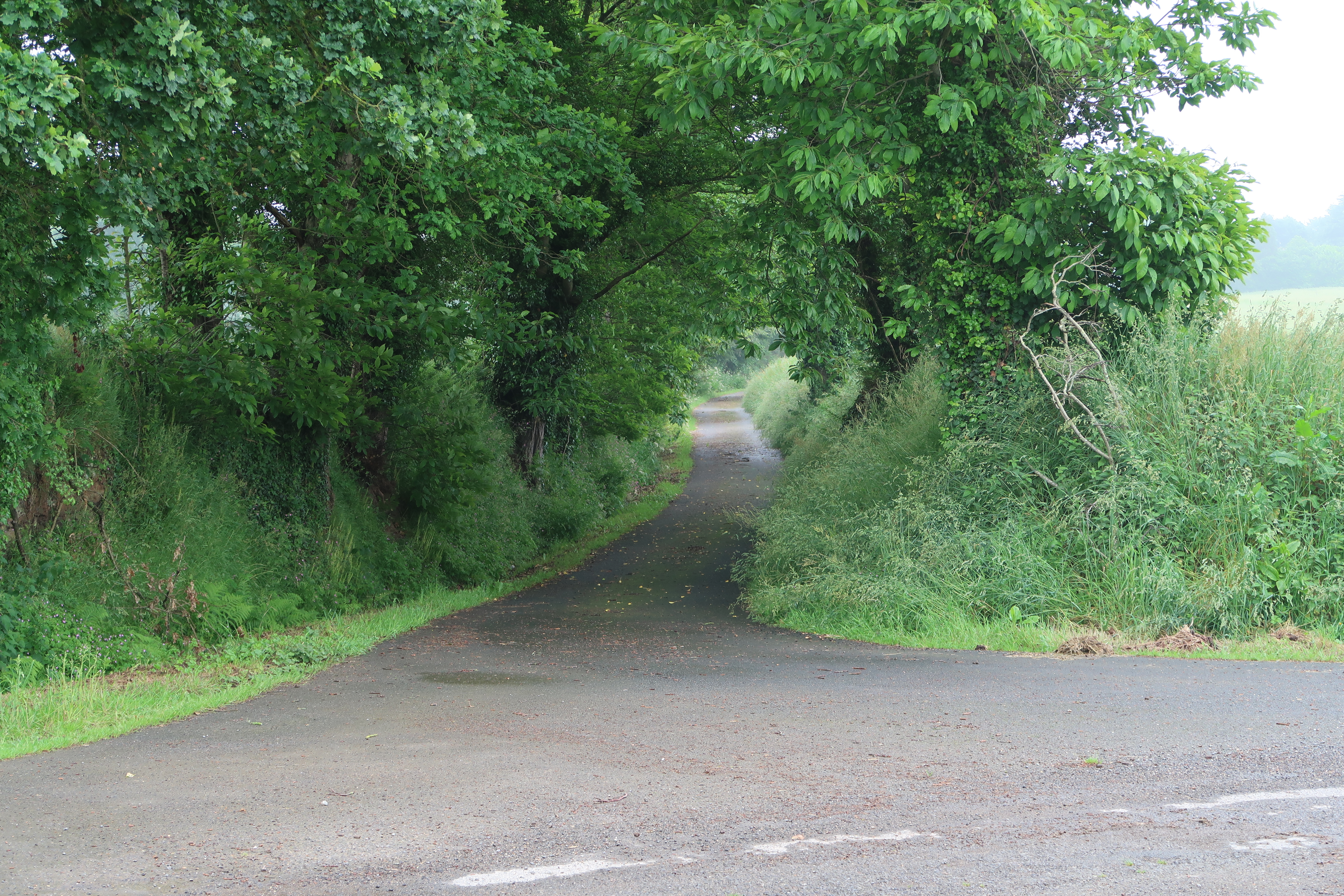 Minihy-Tréguier : chemin bordé de talus-murs et d'arbres menant de l'ancien manoir de Guernalio à la ferme de Crec'h ar GoailImmatriculation