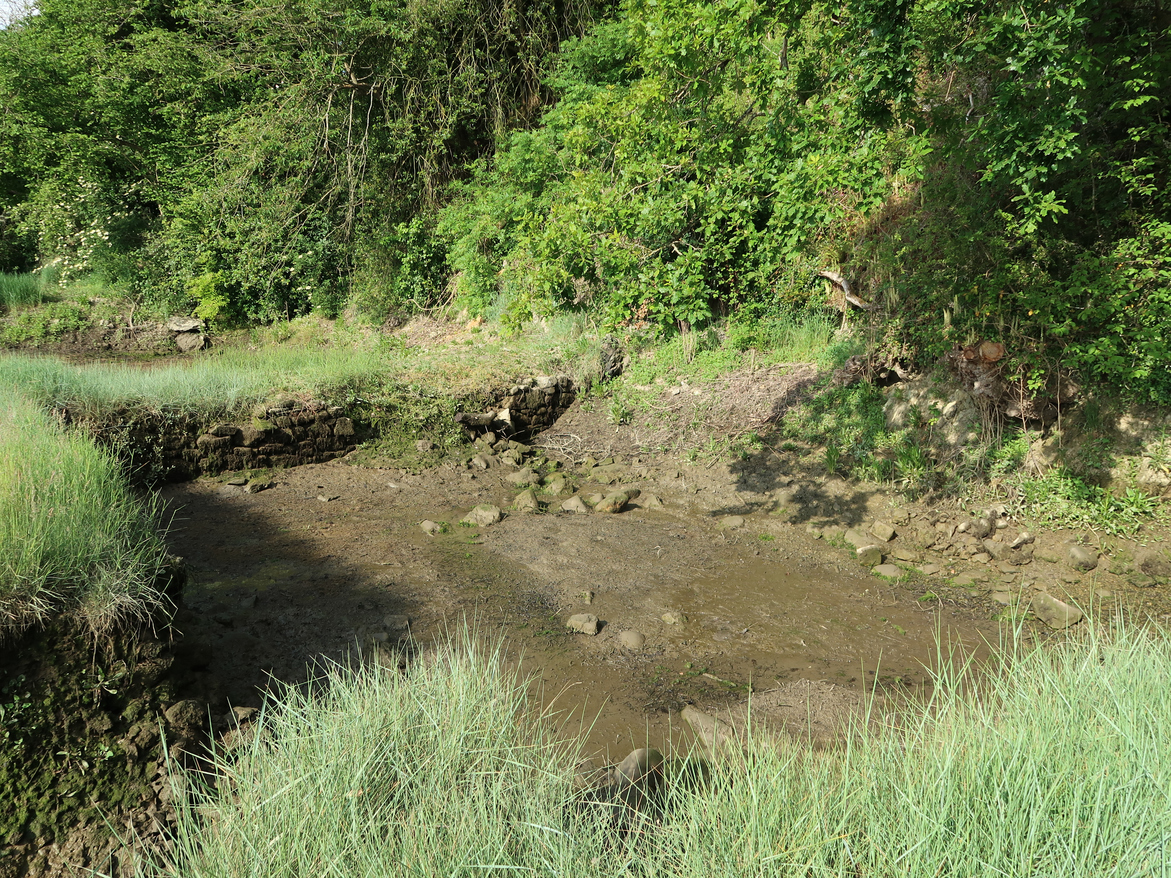 Minihy-Tréguier : l'anse de Traou Martin à marée basse, détail de l'un des quatre routoirs (état en 2019)Immatriculation