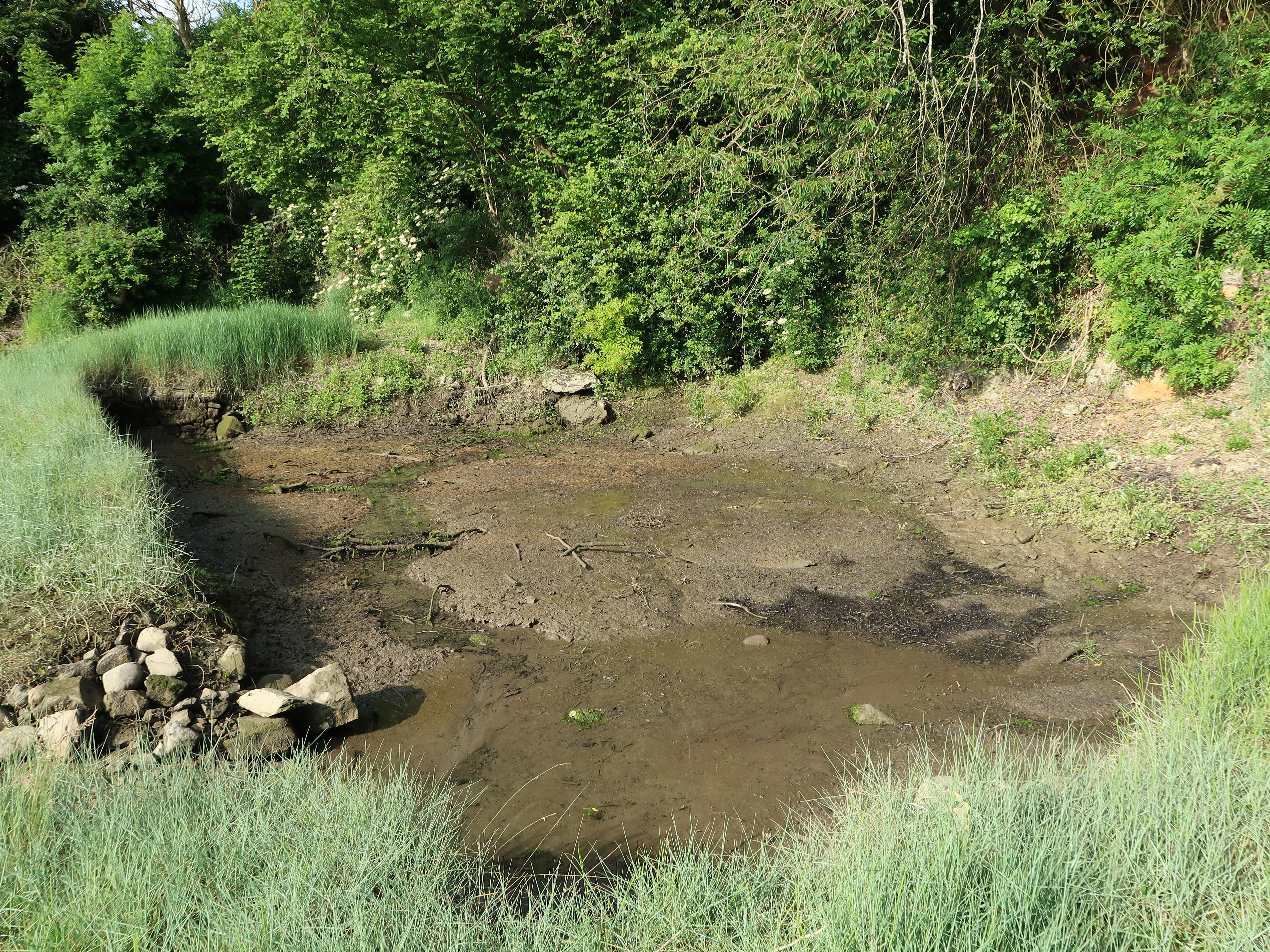 Minihy-Tréguier : l'anse de Traou Martin à marée basse, détail de l'un des quatre routoirs (état en 2019)Immatriculation