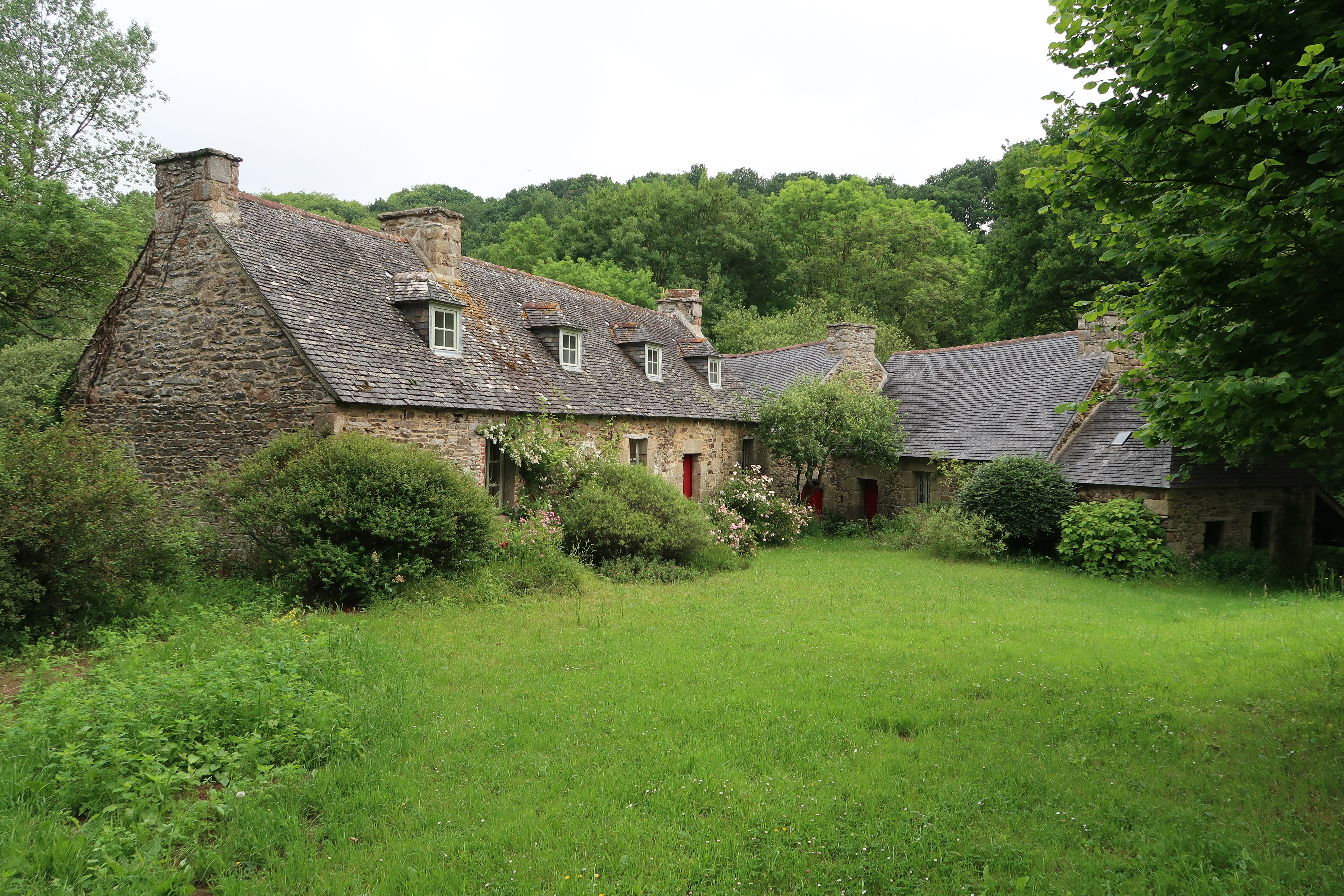 Minihy-Tréguier : moulin à eau de Kerzéhan sur le Guindy et logis, vue générale depuis le sudImmatriculation
