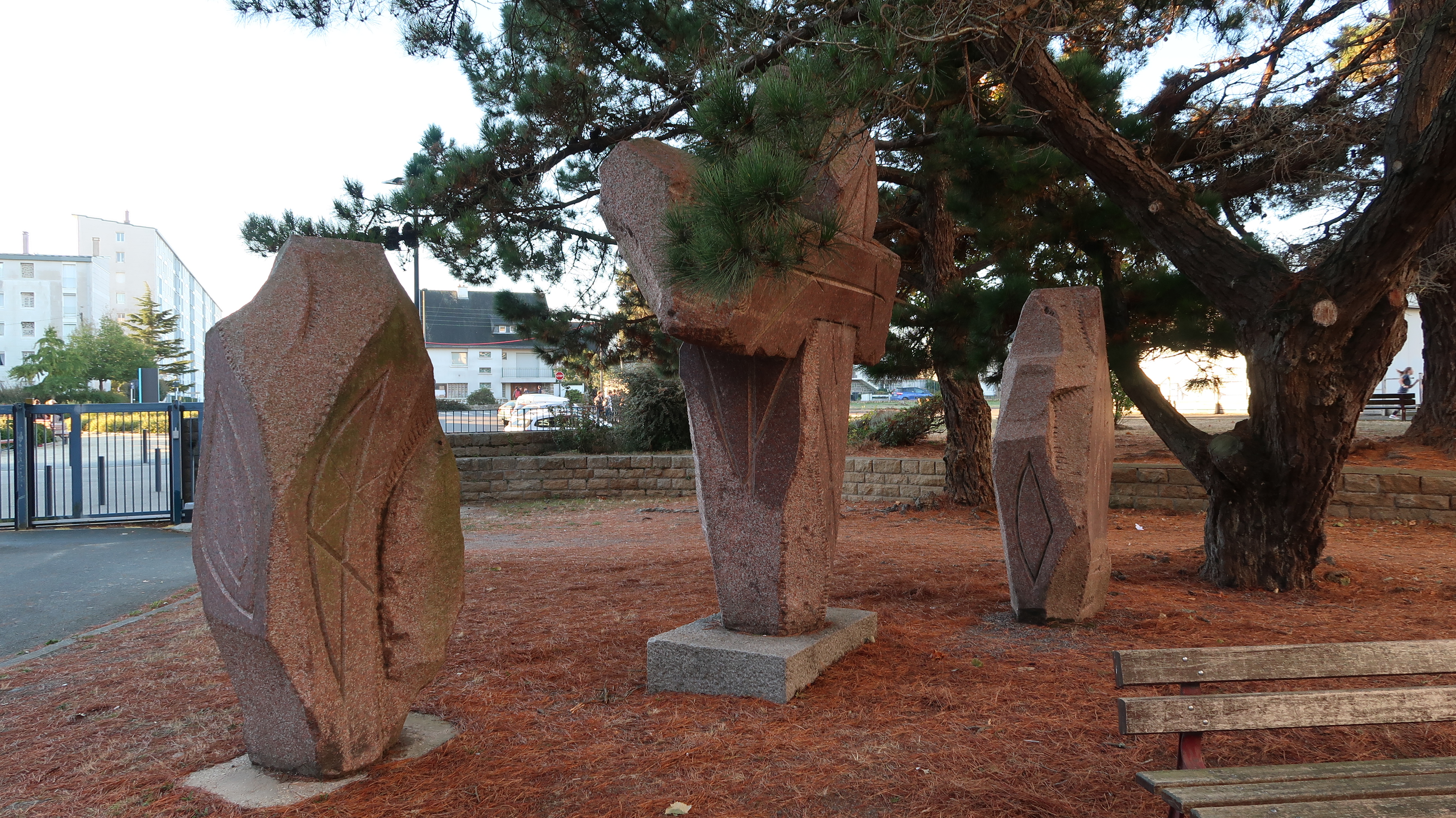 Sculpture en granite rose de Georges Adam, 1967. Elle constitue la décoration du lycée au titre du 1% artistique.Immatriculation