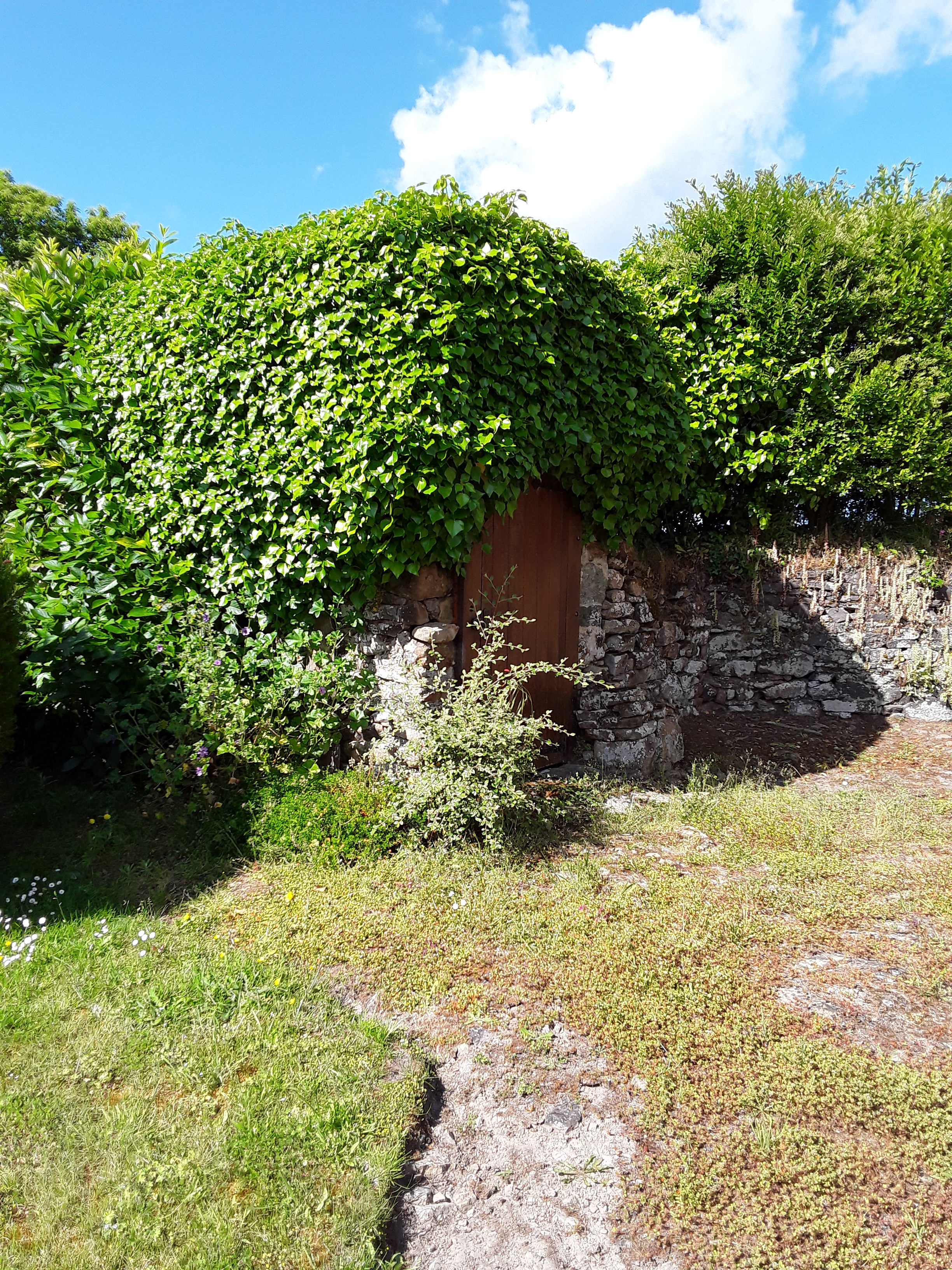 Vue générale du puits envahi par le lierre présent dans la cour sud. Etat en 2019.Immatriculation