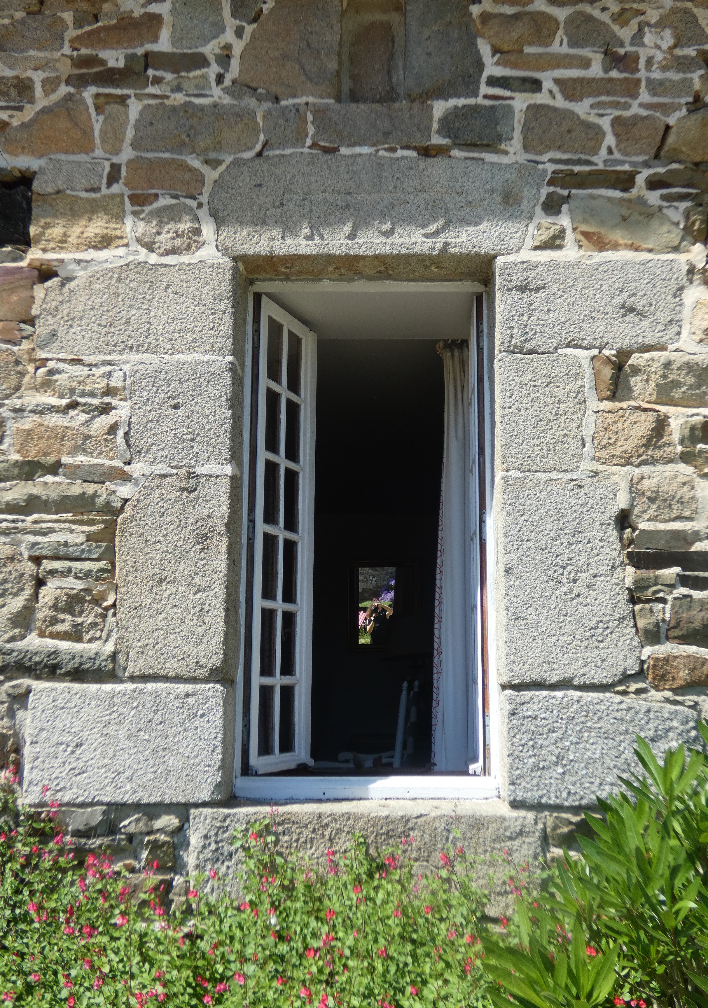 Ancien manoir de Kergrist. Façade sud-ouest du logis, fenêtre datée 1769. Etat en 2019.Immatriculation