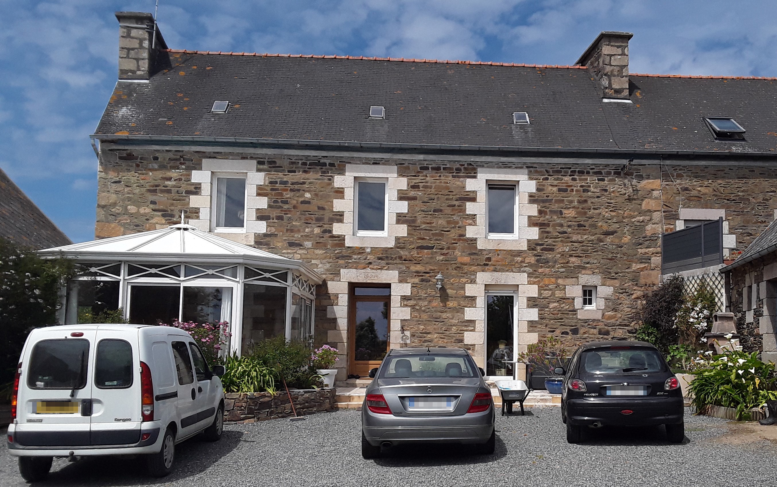 Ferme de Kergruyant Huellan. Vue générale de la façade sud-est du logis. Etat en 2019.Immatriculation