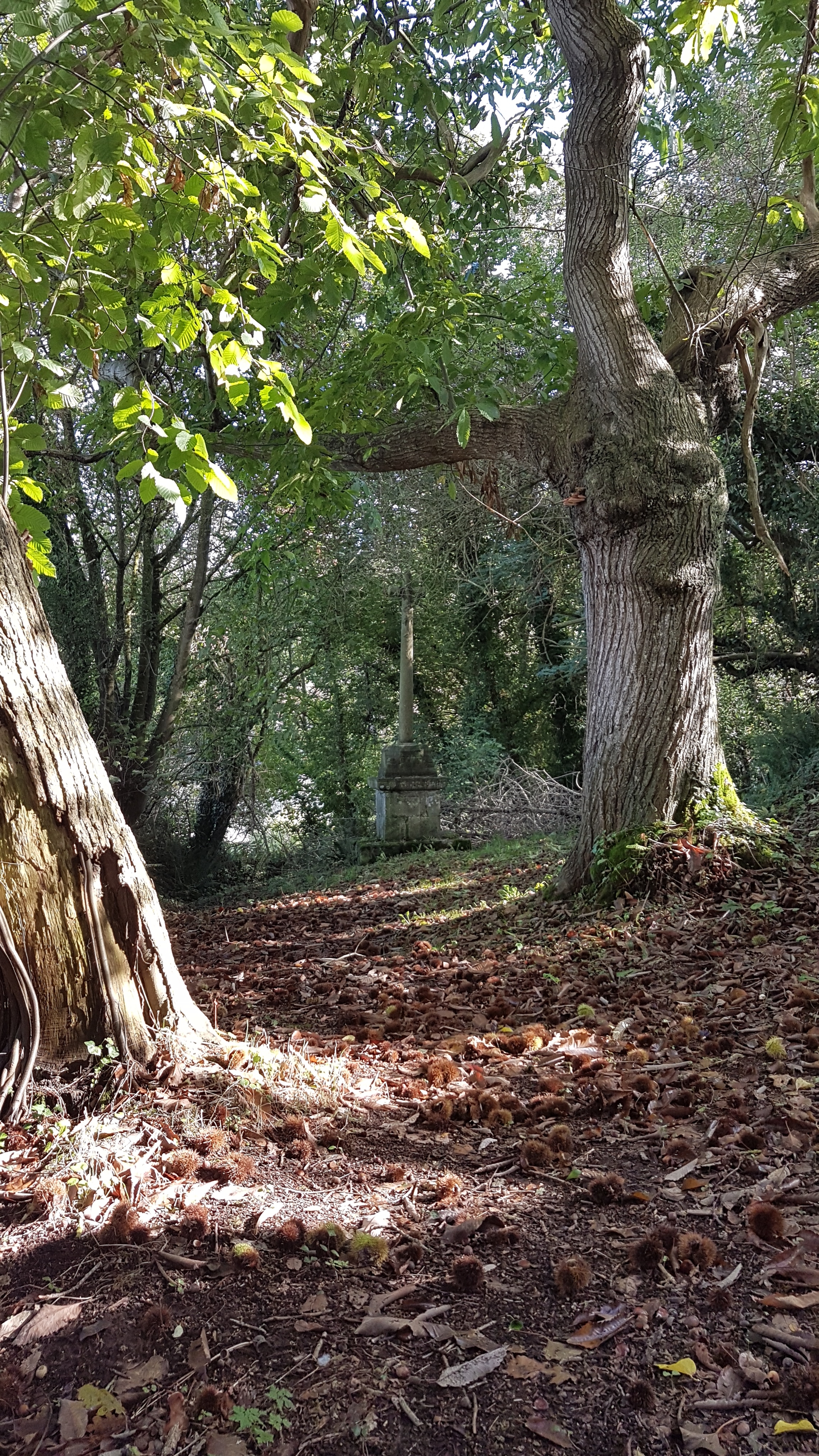 Croix de Saint-Antoine à proximité d'une petite châtaigneraie. Etat en 2019.Immatriculation
