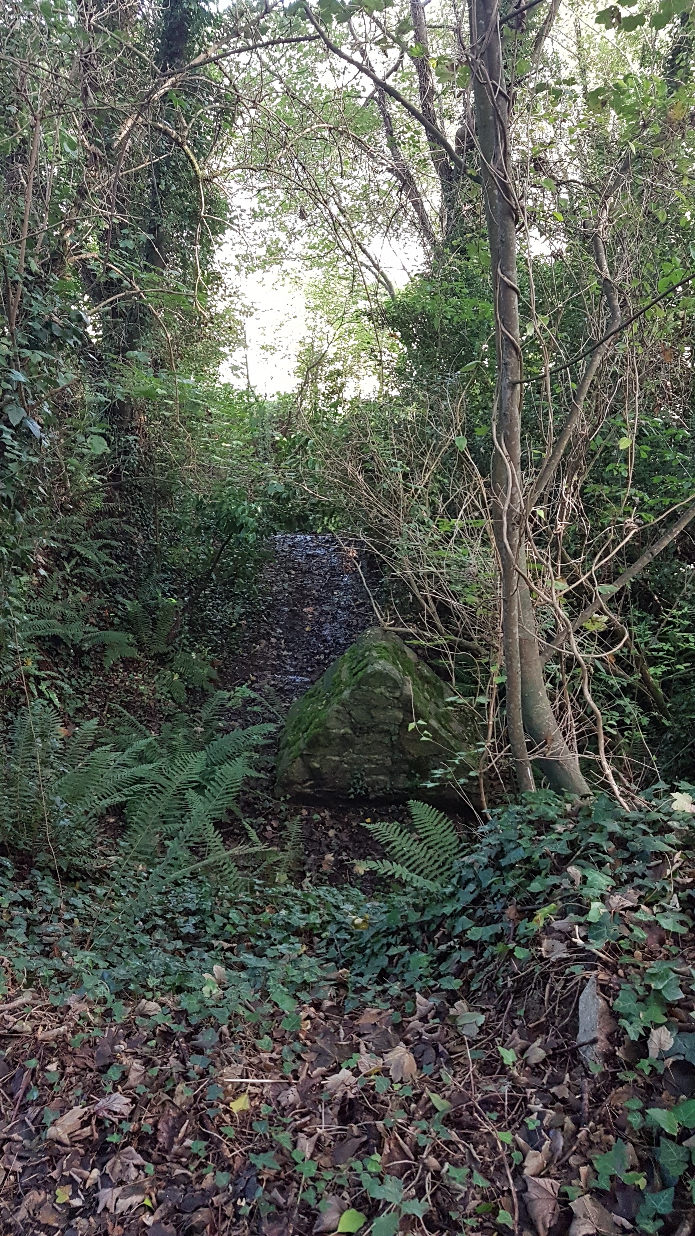 Vue générale de l'arrière de la fontaine depuis les hauteurs de la rive du Trieux. Etat en 2019.Immatriculation