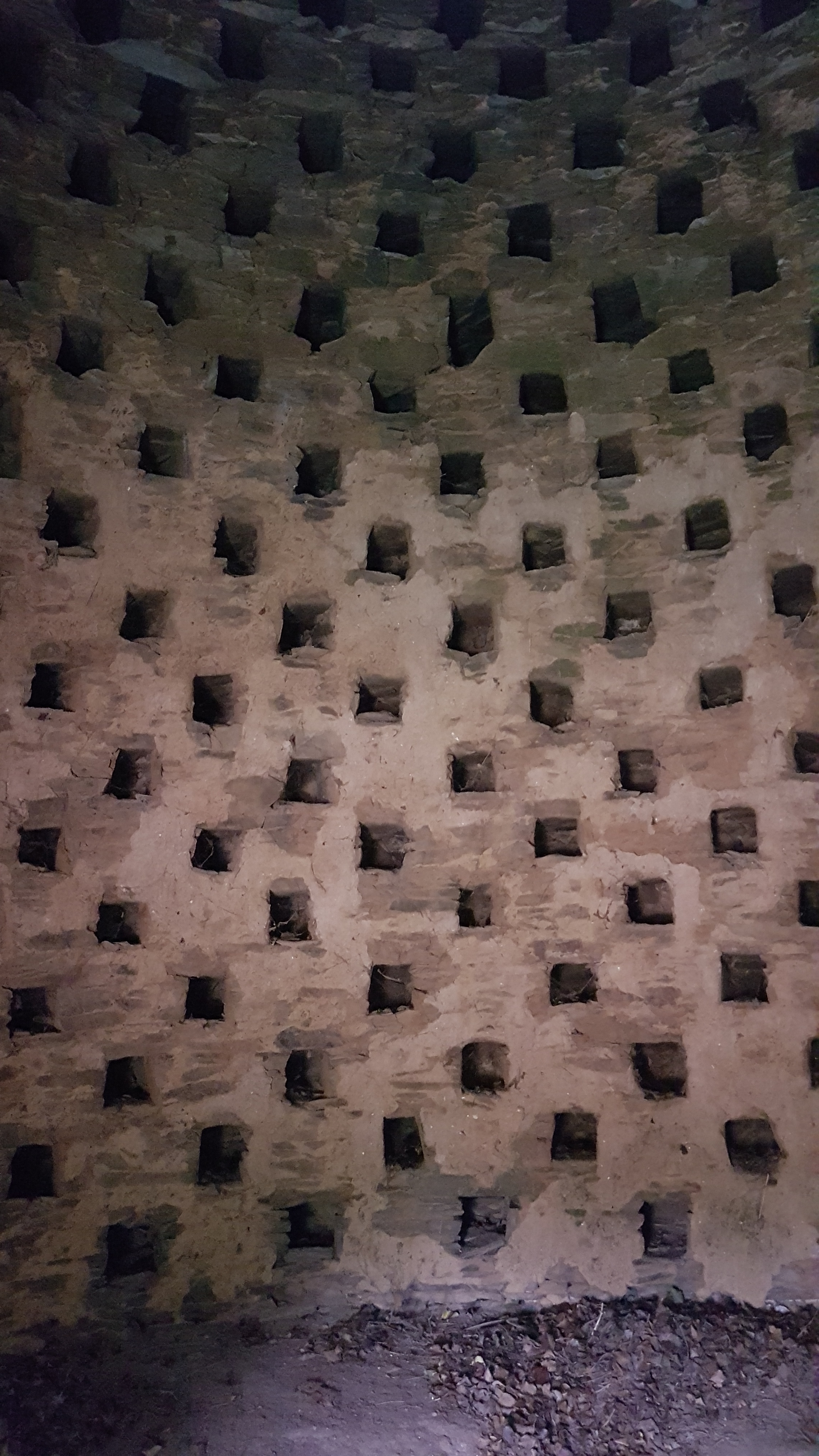 Intérieur du colombier, détail des boulins. Etat en 2019.Immatriculation