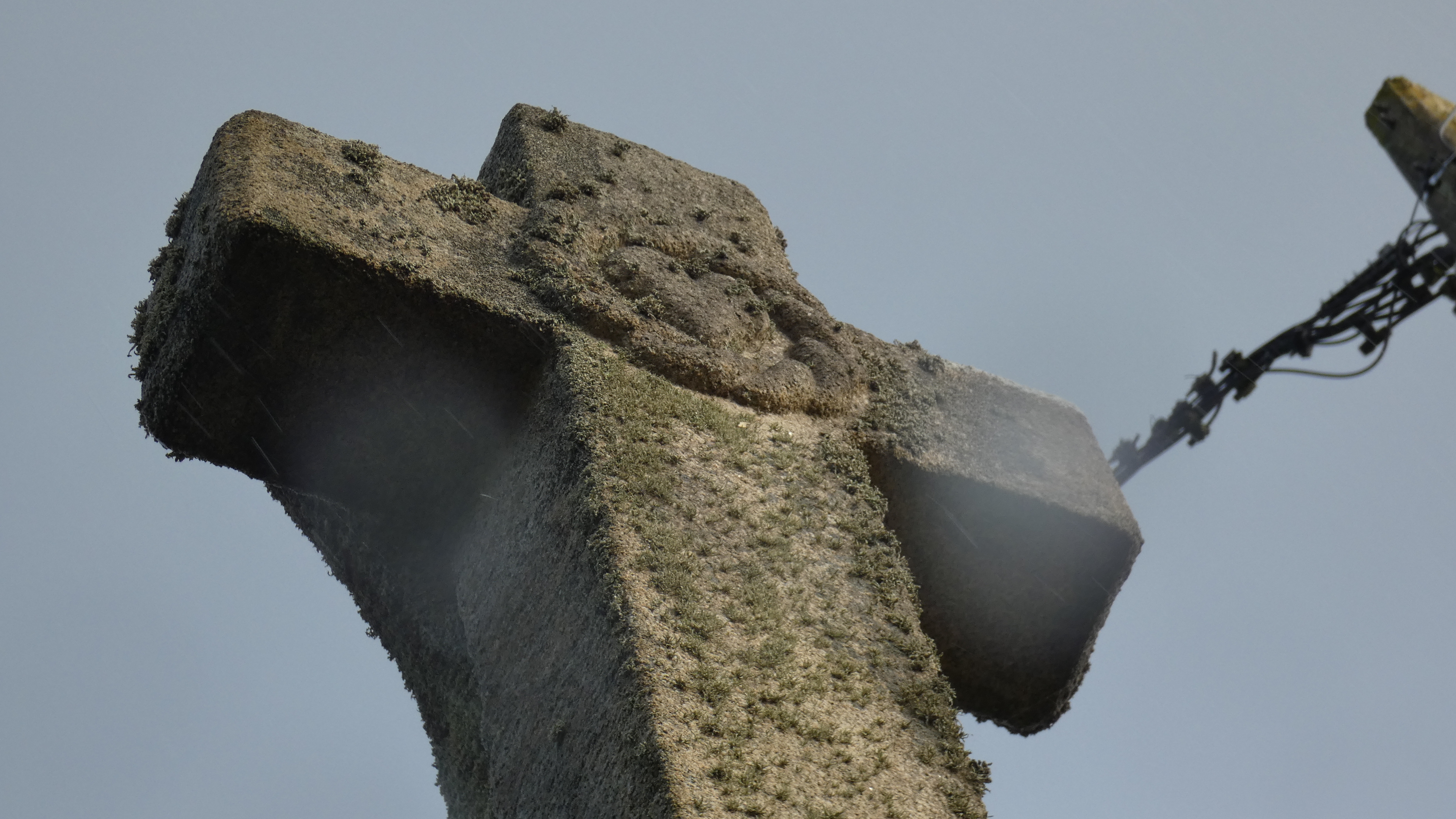 Détail de la face sud du croisillon sculptée en son centre d'un coeur entouré d'une couronne d'épines. Etat en 2019.Immatriculation