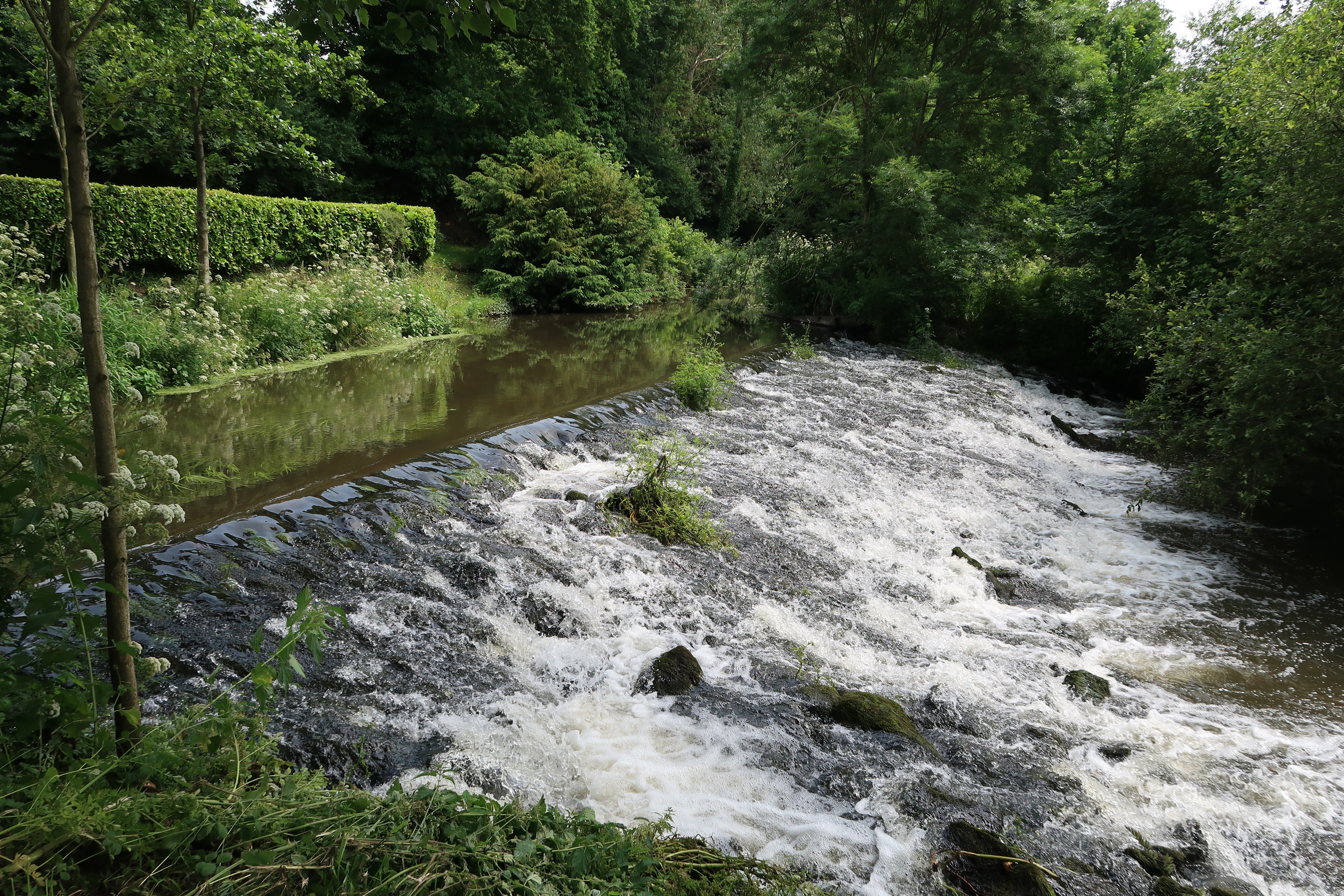 Minihy-Tréguier : le Guindy dans les environs du moulin à eau de Pont Arscoul (Pont ar Scoul), détail du barrageImmatriculation