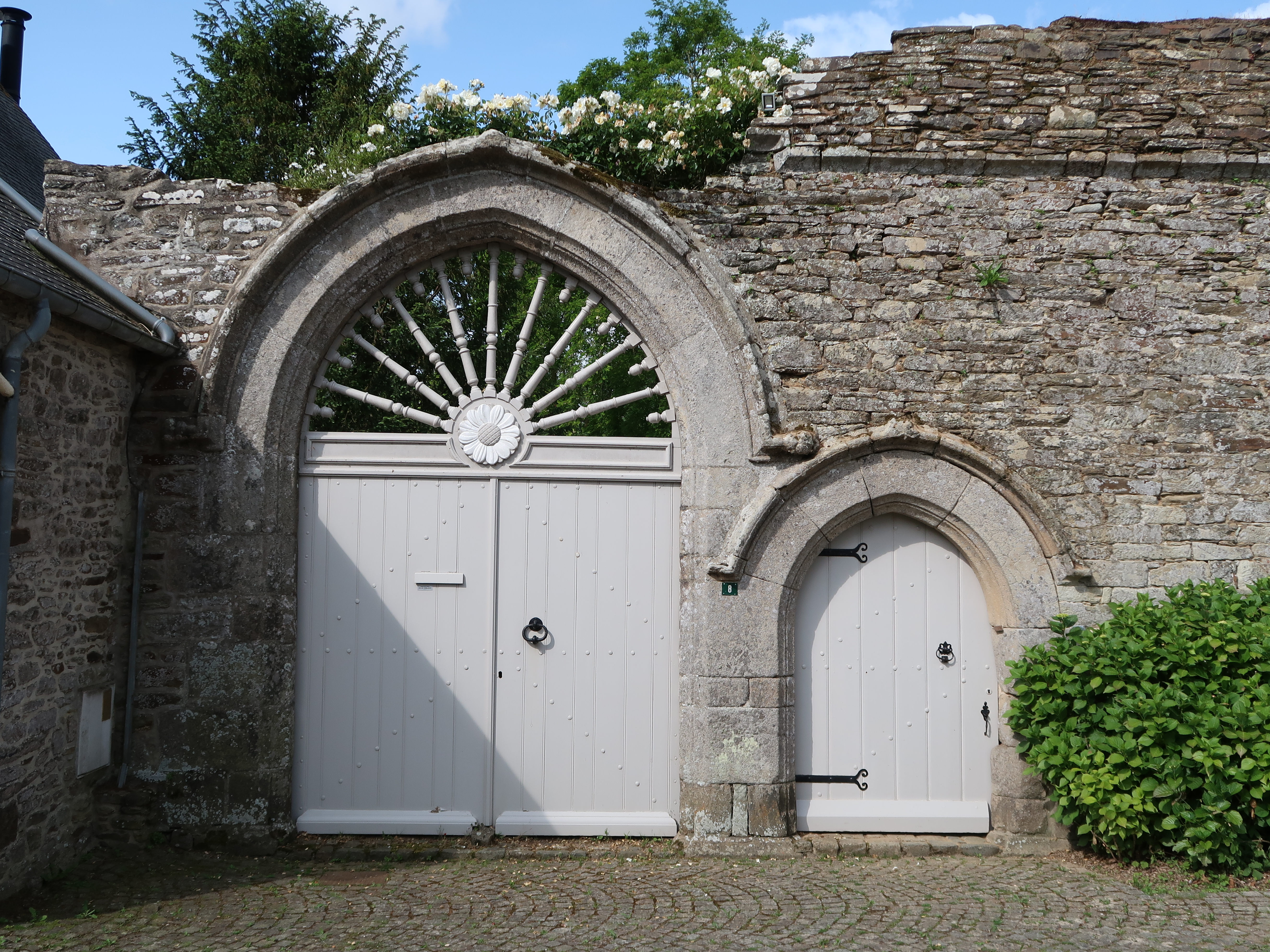 Portail côté rue du Bourg. Il se compose d'une porte charretière et d'une porte piétonneImmatriculation