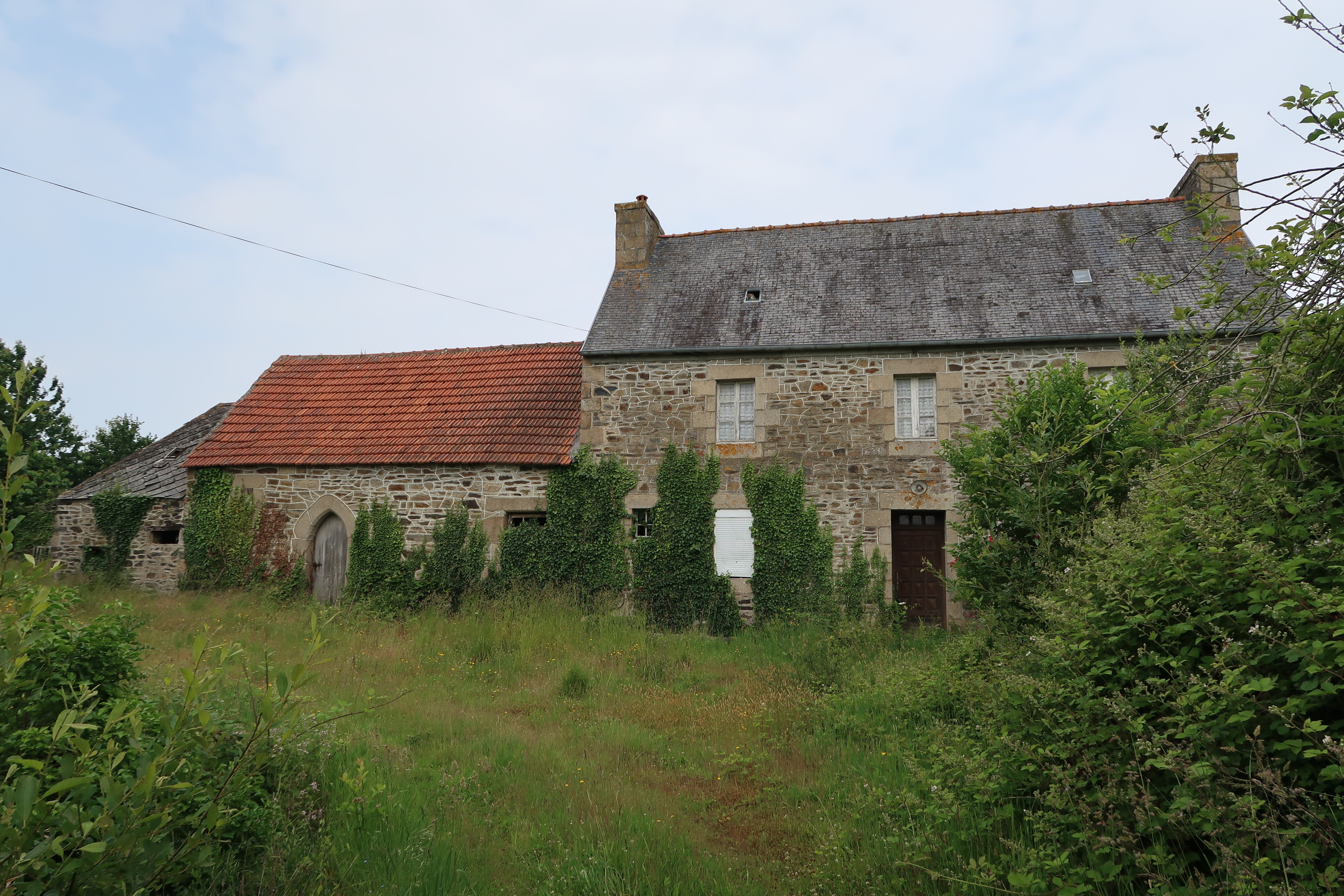 Minihy-Tréguier, le Merdy Bihan : logis de ferme (actuellement désaffecté) et dépendance accolée (ancien logis), élévation orientée vers le sud-estImmatriculation