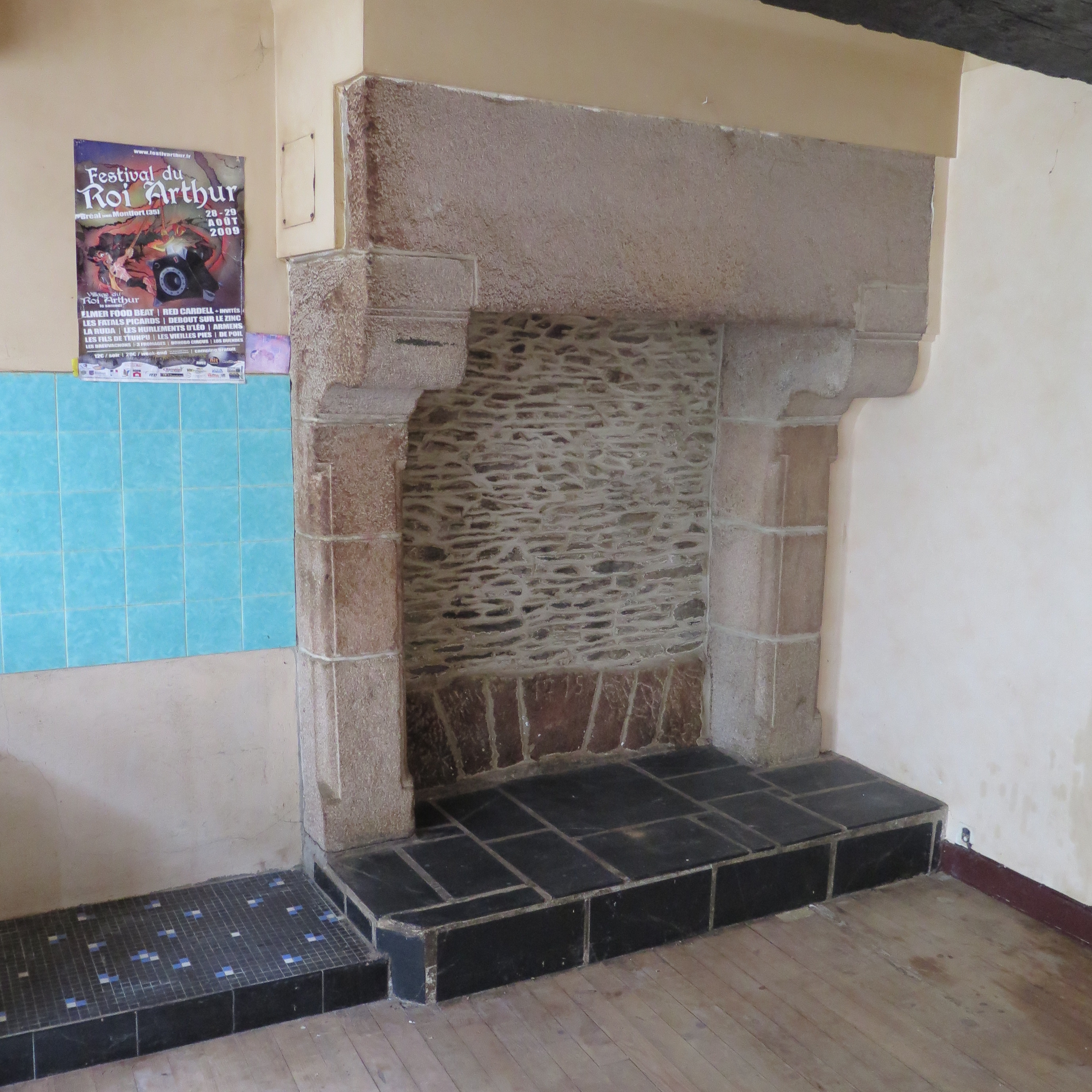 Tréguier, 14 rue Colvestre : bâtiment arrière à usage de logement se situant dans cour, rez-de-chaussée, détail de la cheminée (une pierre de l’âtre porte le millésime "1715")Immatriculation