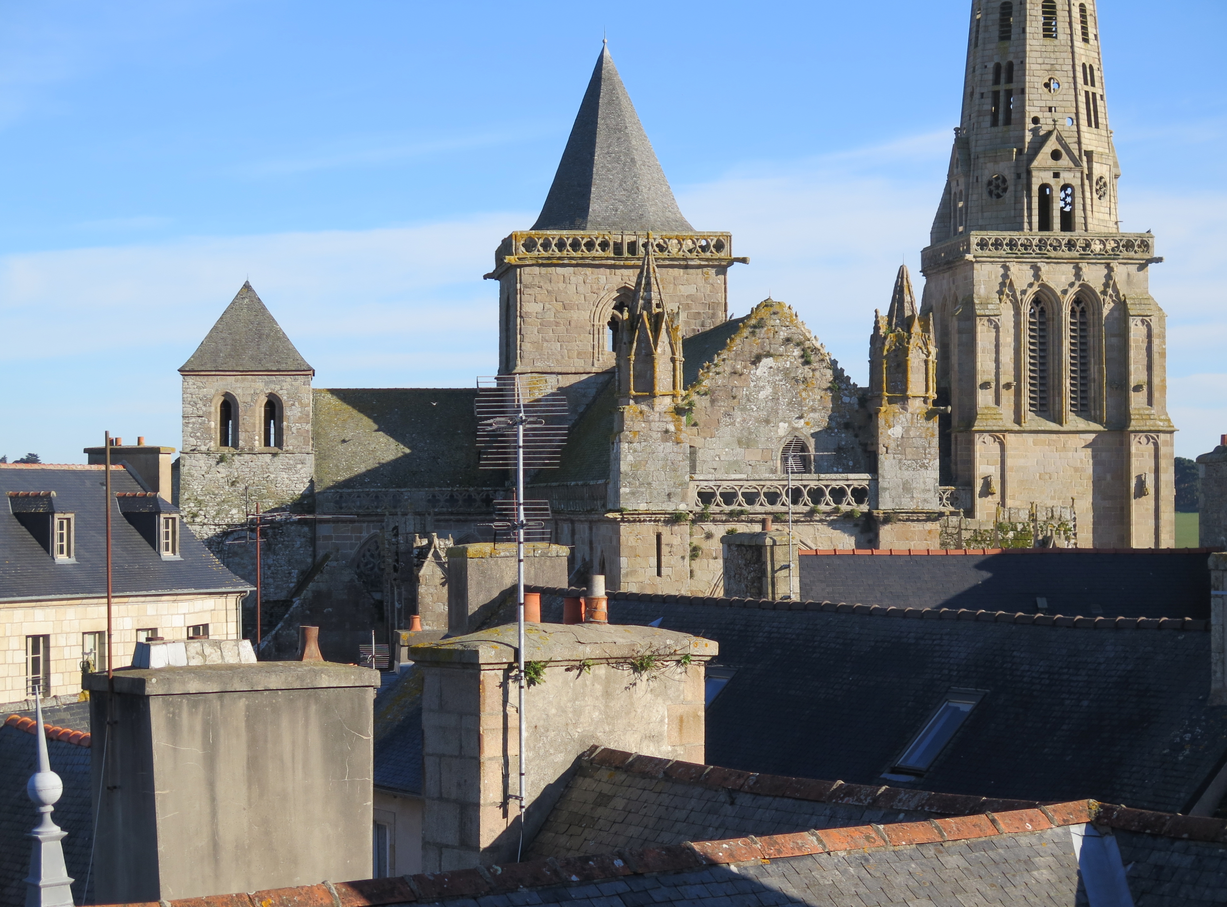 Vue générale de la cathédrale de Tréguier depuis le manoir urbain dit "Maison de Jean V" situé au n° 22 de la rue ColvestreImmatriculation