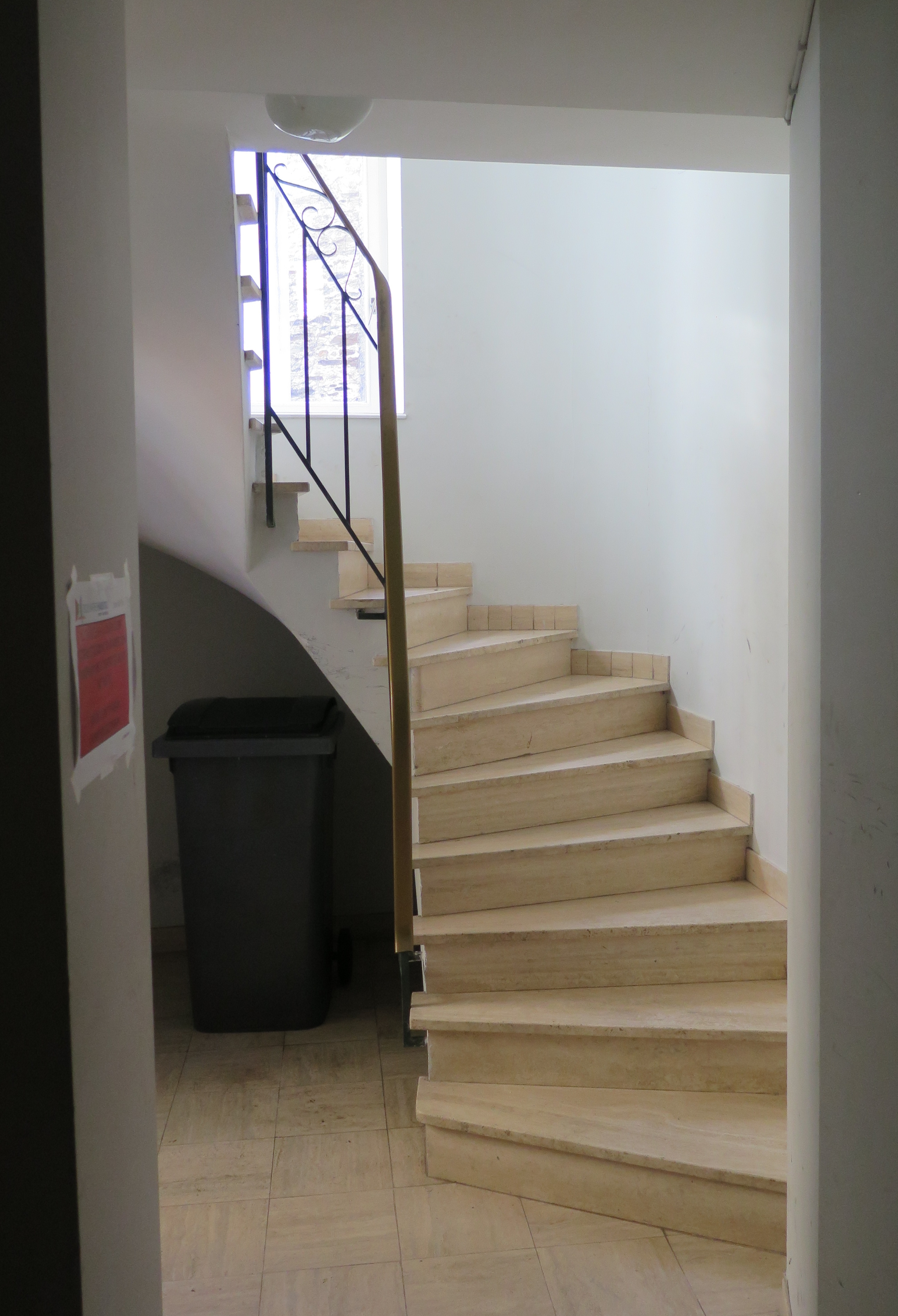 5 rue Colvestre : immeuble à logements (ancienne mairie de Tréguier), détail de l'escalier en vis actuelImmatriculation