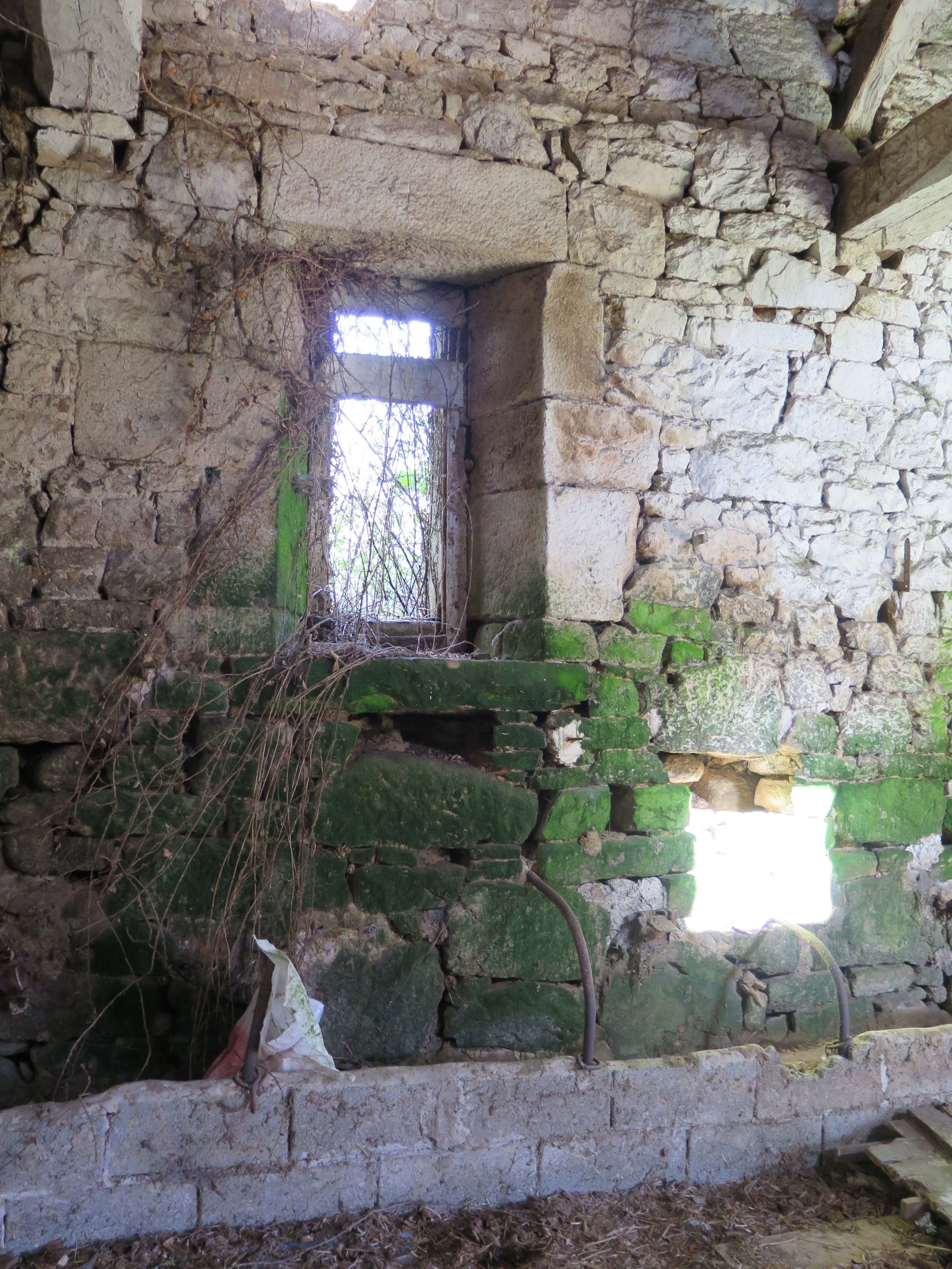 Plouaret, manoir de Guernanchanay : grange, revers d'une fenêtre oreintée vers le nord (à linteau droit)Immatriculation