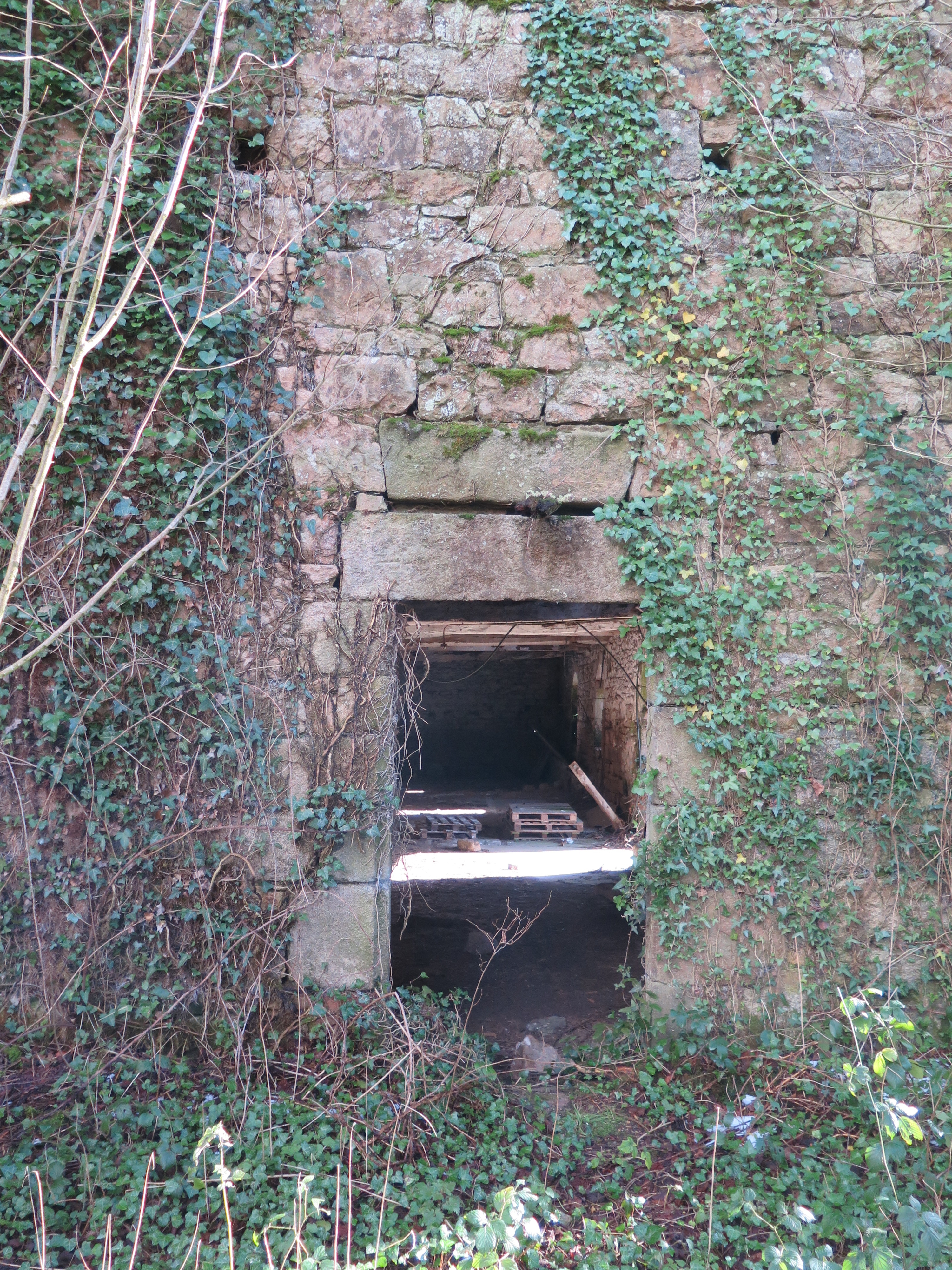 Plouaret, manoir de Guernanchannay : grange, pignon ouest, détail de la porte à linteau droitImmatriculation