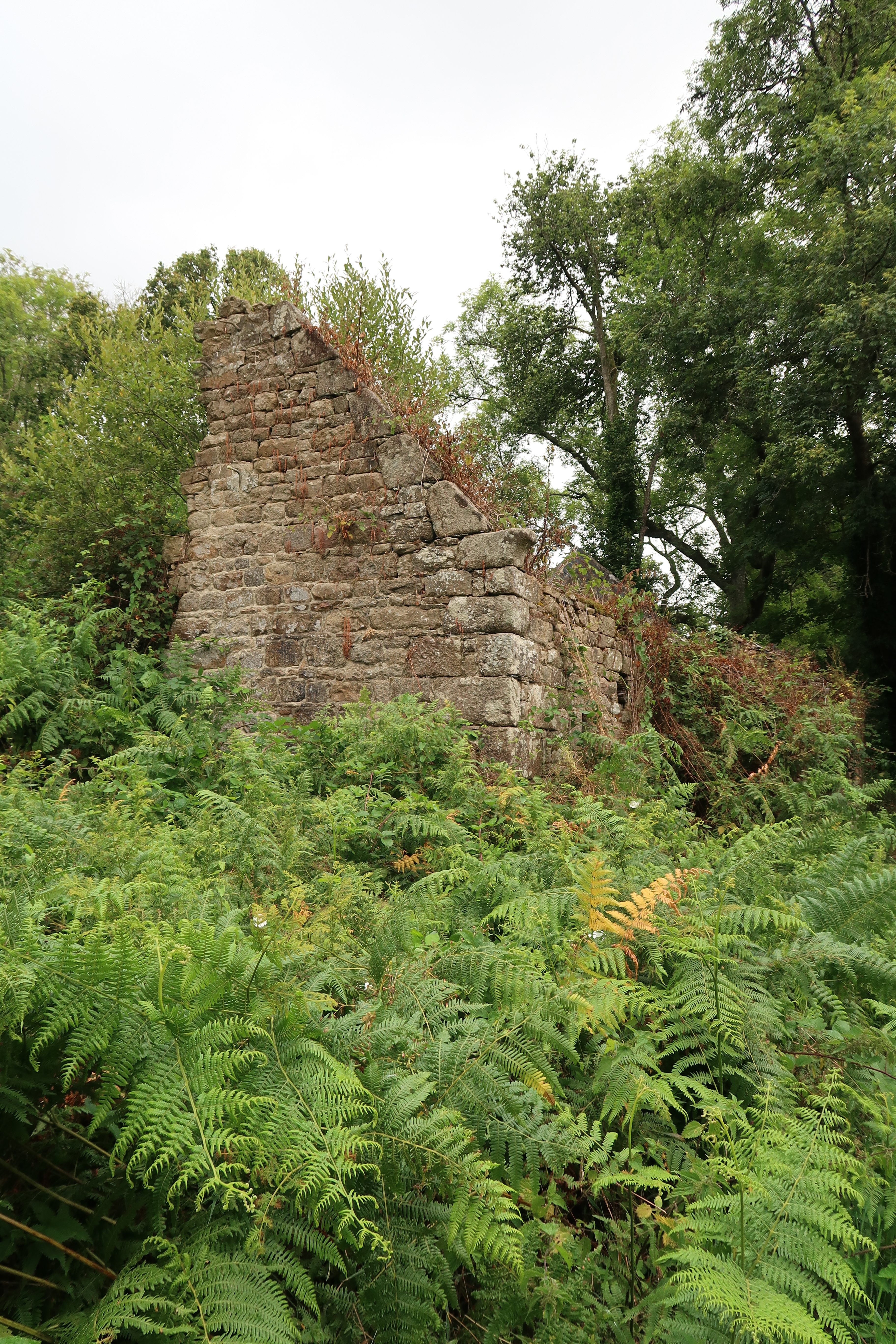 Moulin, pignon ouest (état en 2019). On notera la présence de rampant et crossette moulurée en pierre de taille de graniteImmatriculation
