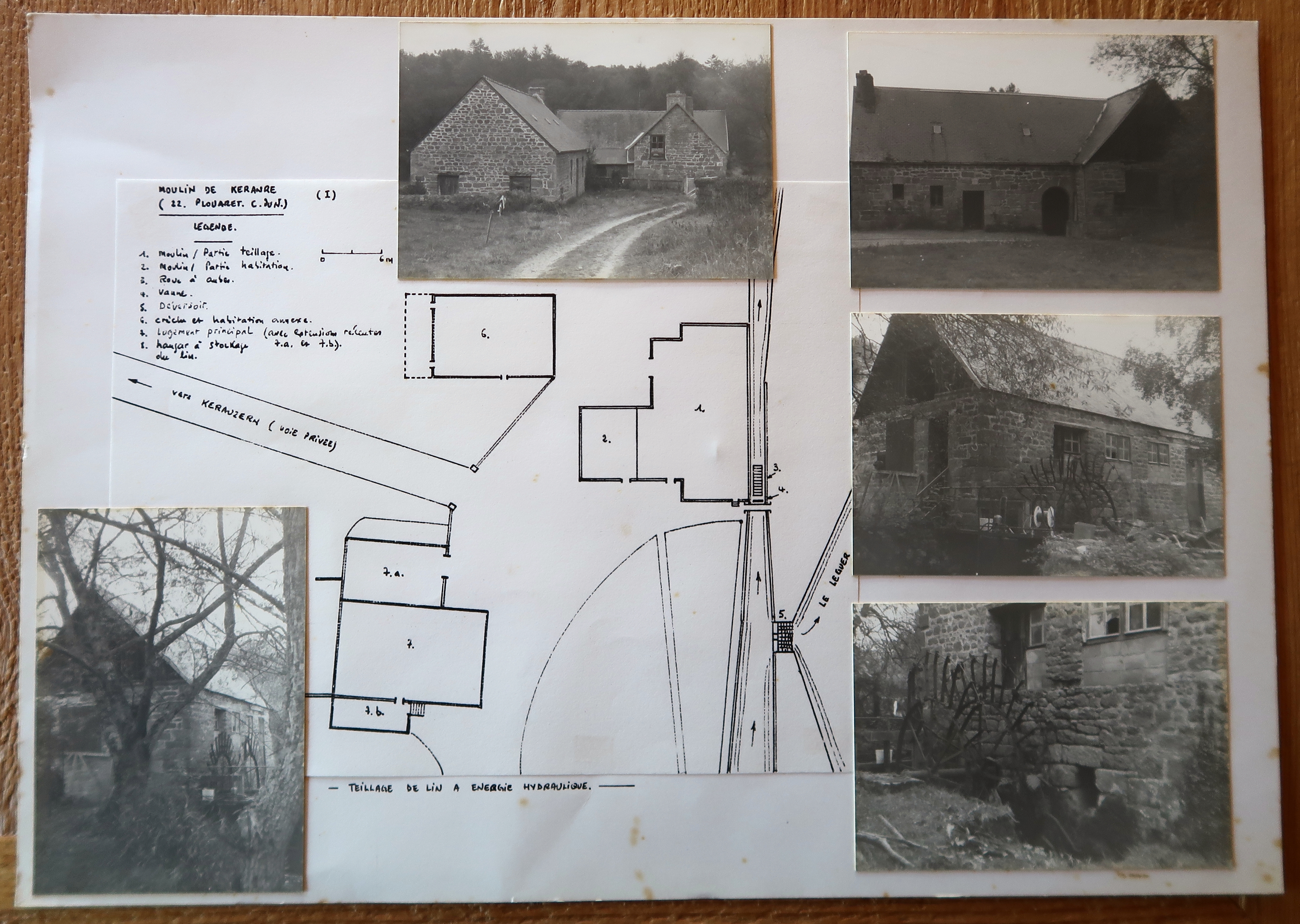 Trois planches de relevés, plans et photographies de l'état ancien du teillage de Keranré par Jean-Yves Andrieux (non daté, vers 1990).
