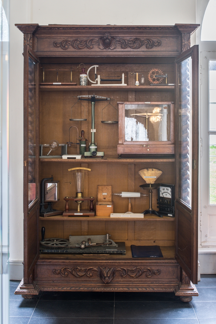 Collection d'instruments d'enseignement des sciences physiques, dans le hall d'accueil.Immatriculation