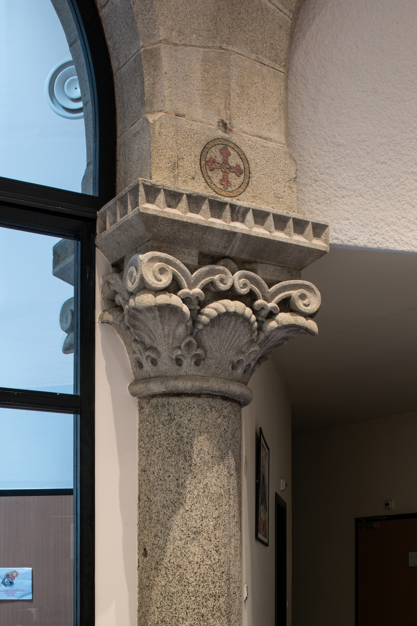 Chapelle : détail sur le chapiteau d'une colonne enchâssée.Immatriculation