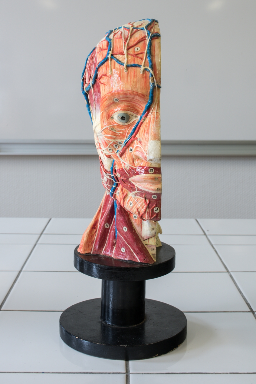 Coupe sagittale de boîte crânienne écorchée - Modèle d'anatomie en plâtre (Etablissements du Docteur Auzoux, 1956Immatriculation