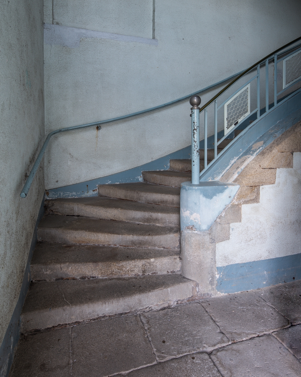 Cage d'escalier en partie réhabilitée vers 1950-1960, dans l'ancien séminaire.Immatriculation