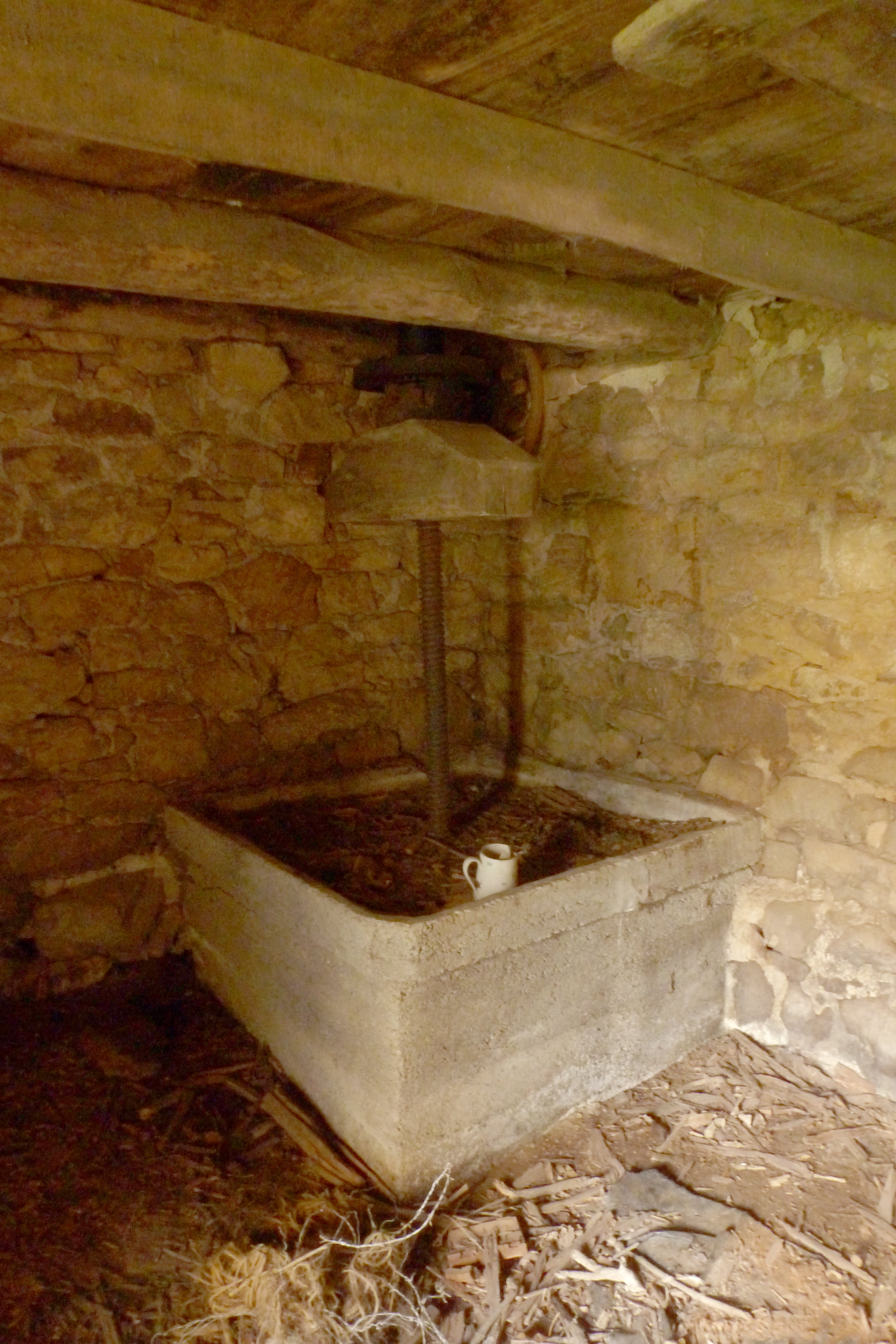 Pressoir en ciment, angle sud-est. (2019)Immatriculation